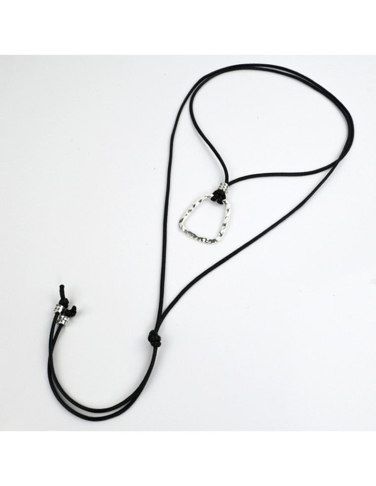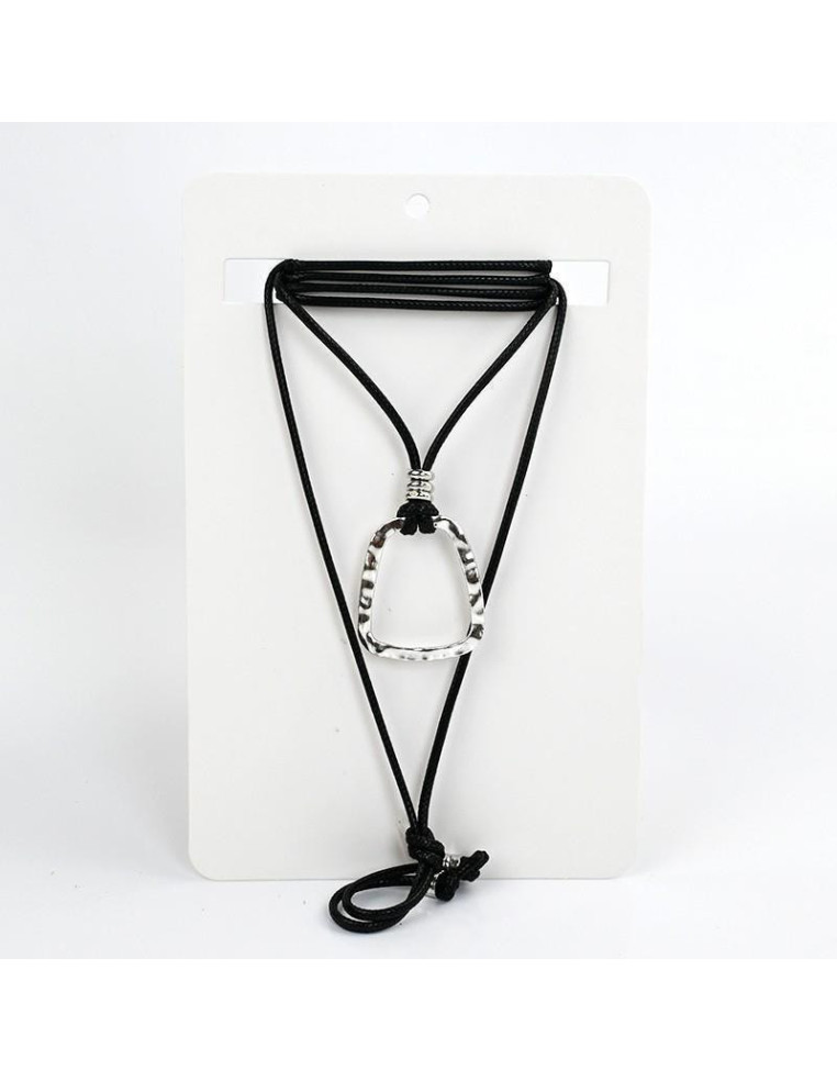 Collar de cordón engomado de múltiples vueltas, con dije exclusivo de fundición níquel y terminales en punteras.