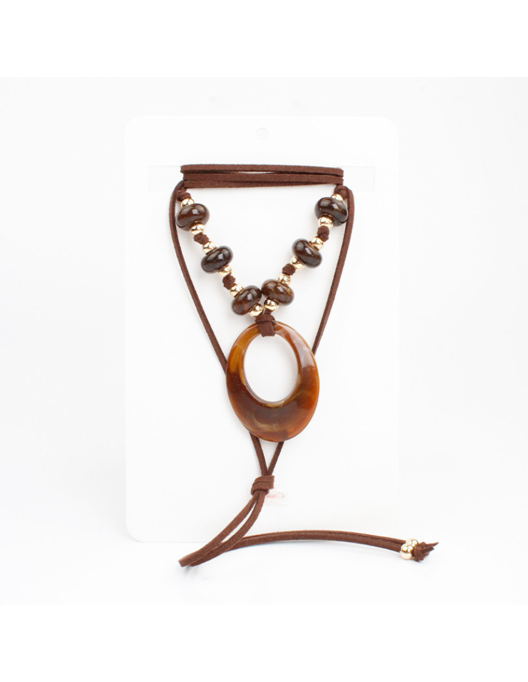 Collar de gamuza de múltiples vueltas intervenida  con dijes de acrílico, piezas de CCB y terminales en punteras.