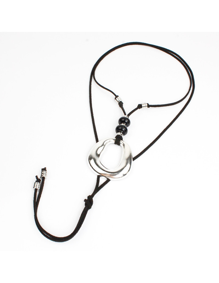 Collar de gamuza de múltiples vueltas, con dije, piezas de acrílico y terminales en punteras.
