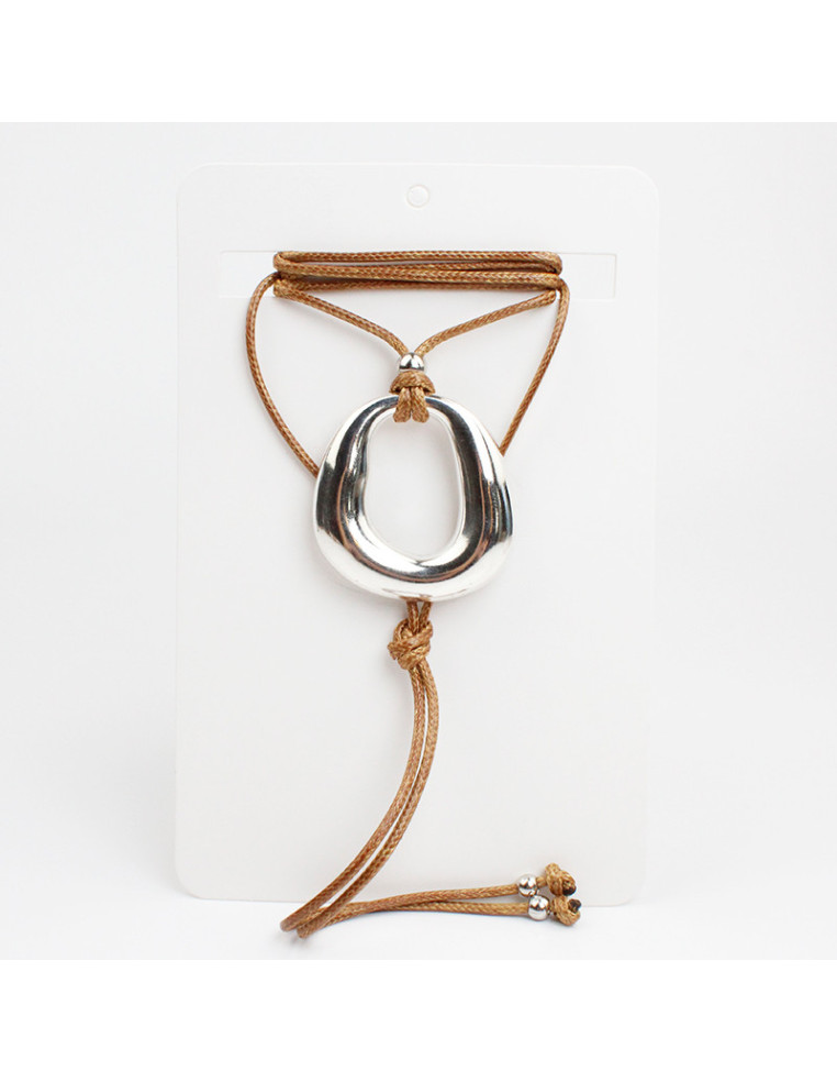 Collar de hilo encerado de múltiples vueltas, con dije de fundición exclusivo, piezas de CCB y terminales en punteras.Medida: 140cm de largo.