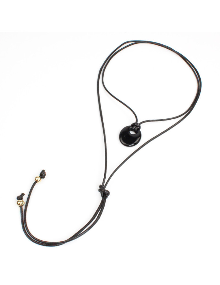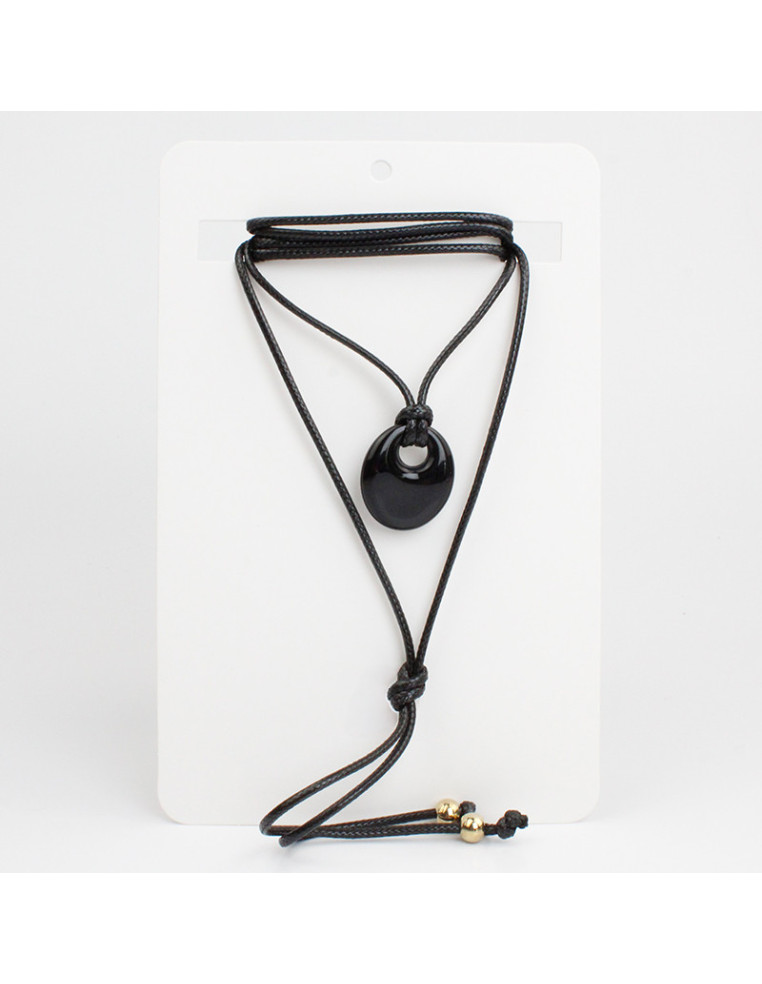 Collar de hilo encerado de múltiples vueltas intervenido con dije exclusivo de acrílico y terminales en punteras. Medida: 140cm de largo aprox.