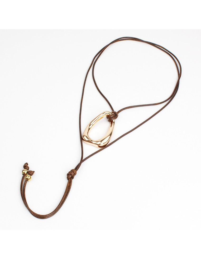 Collar de hilo encerado de múltiples vueltas intervenido con dije exclusivo de fundición y terminales en punteras.