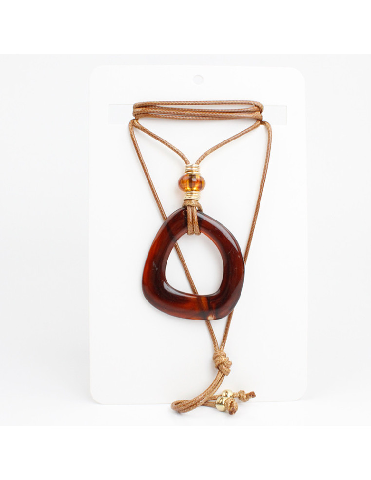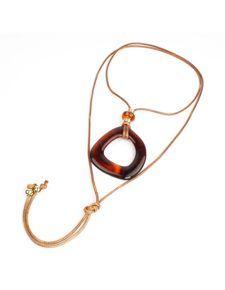 Collar de cordón símil cuero de múltiples vueltas, con dije de acrílico y terminales en punteras. Medida: 140cm de largo.