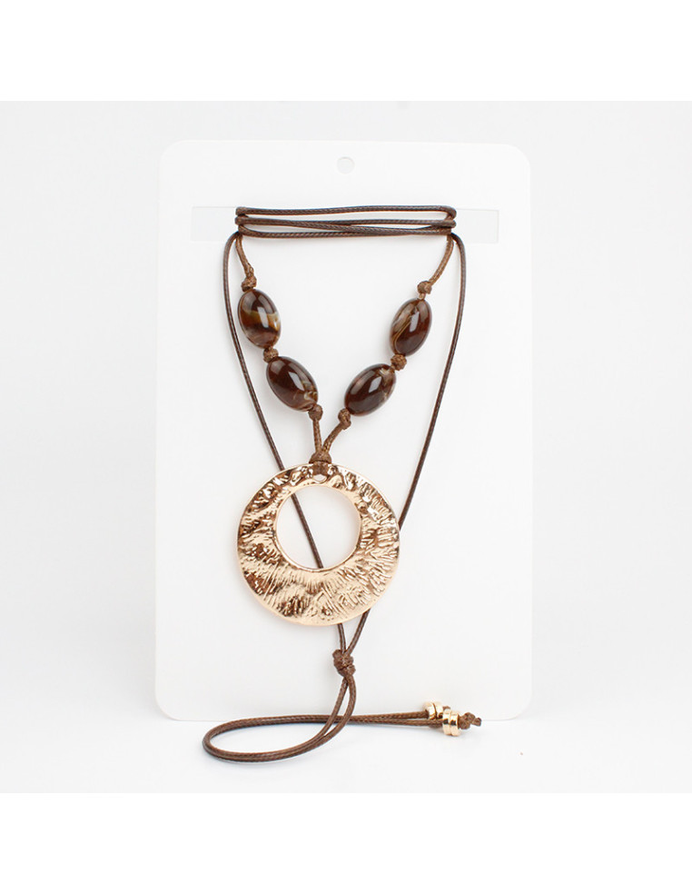 Collar de cordón encerado con dije de fundición, cuentas de acrílico pasantes y terminales en punteras.