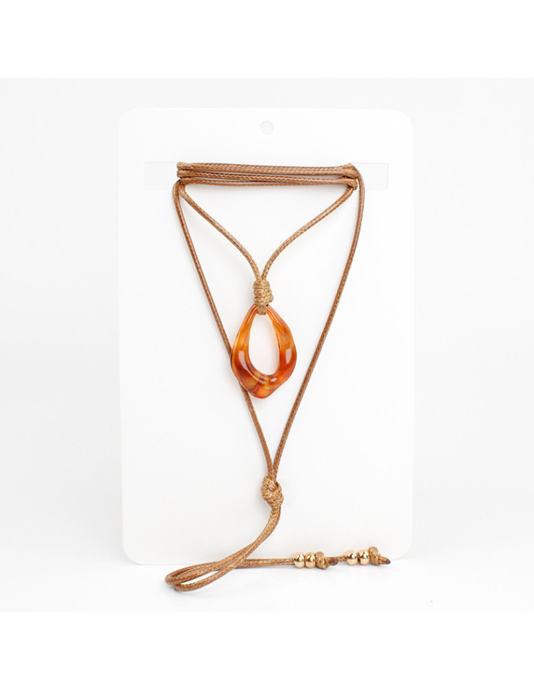 Collar de cordón encerado con dije de acrílico y terminales en punteras.