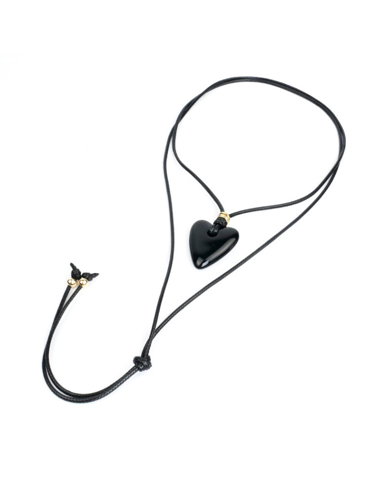 Collar de cordón encerado de múltiples vueltas, con dije de acrílico y terminales en punteras.