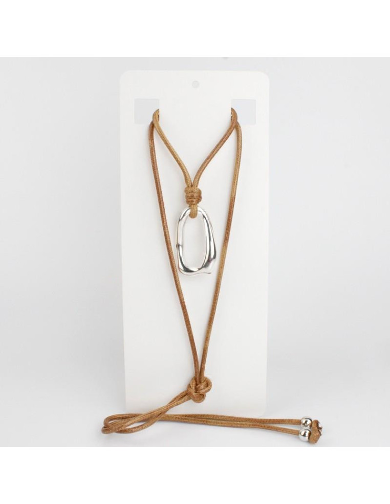 Collar corbatero de cordón encerado símil PU, con dije de fundición níquel.