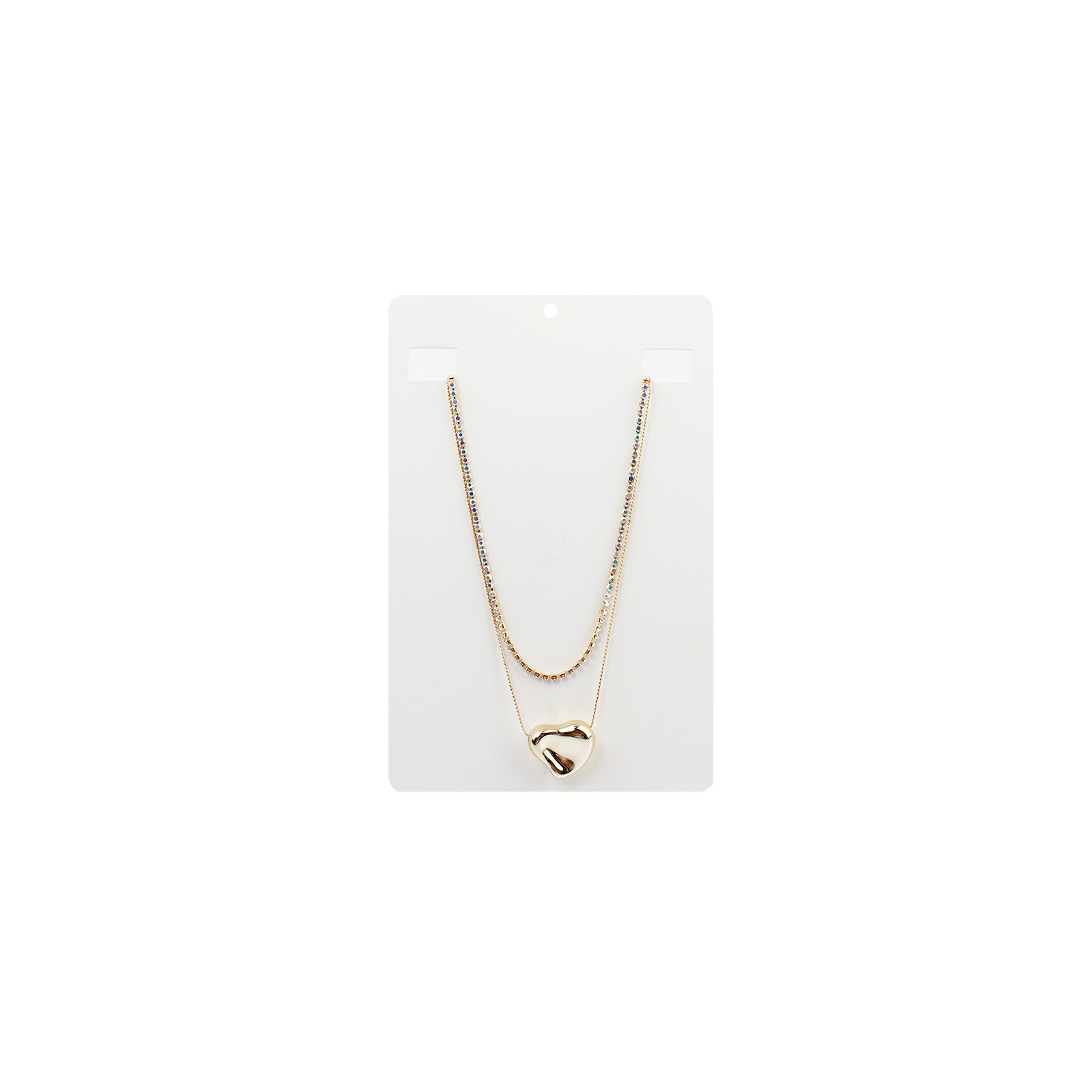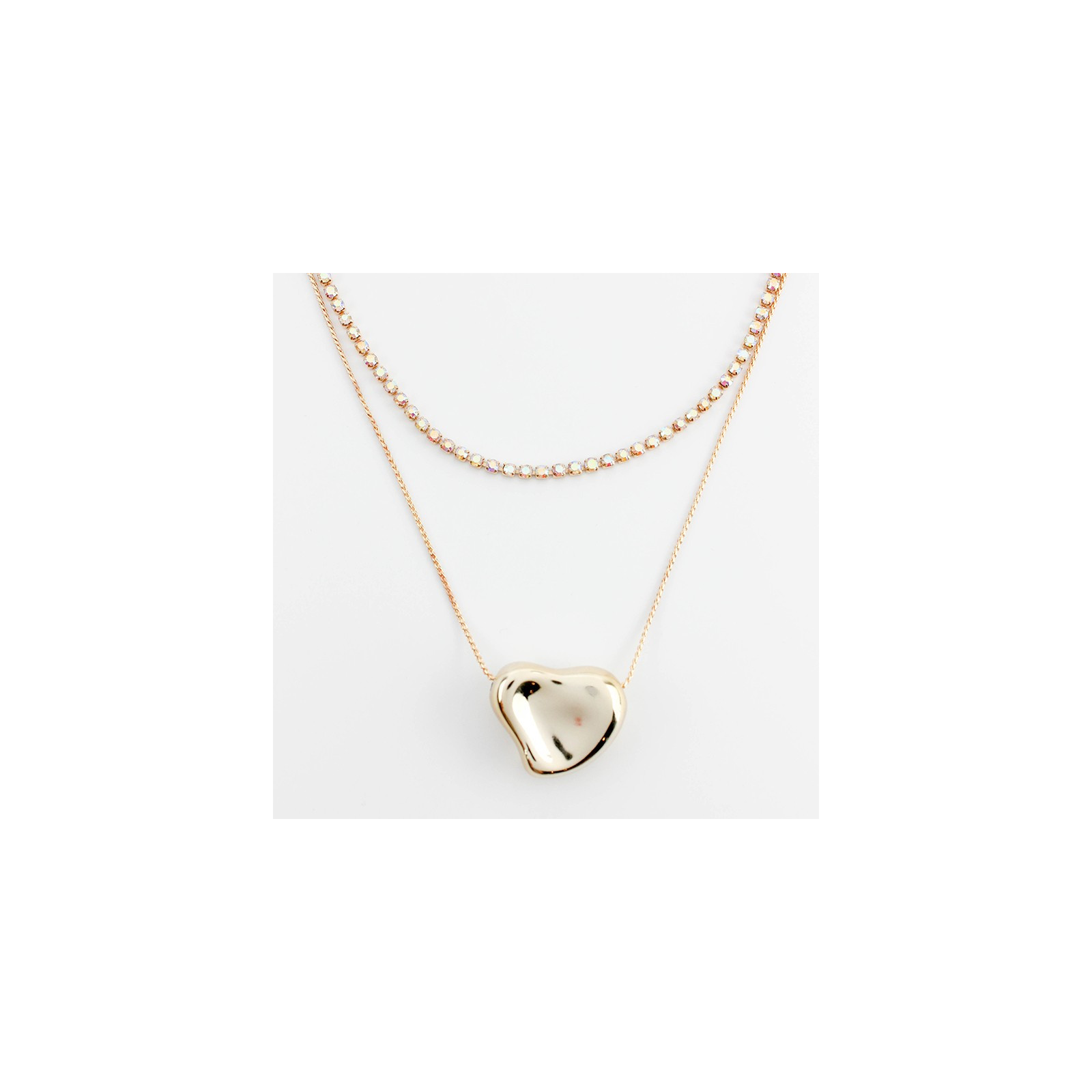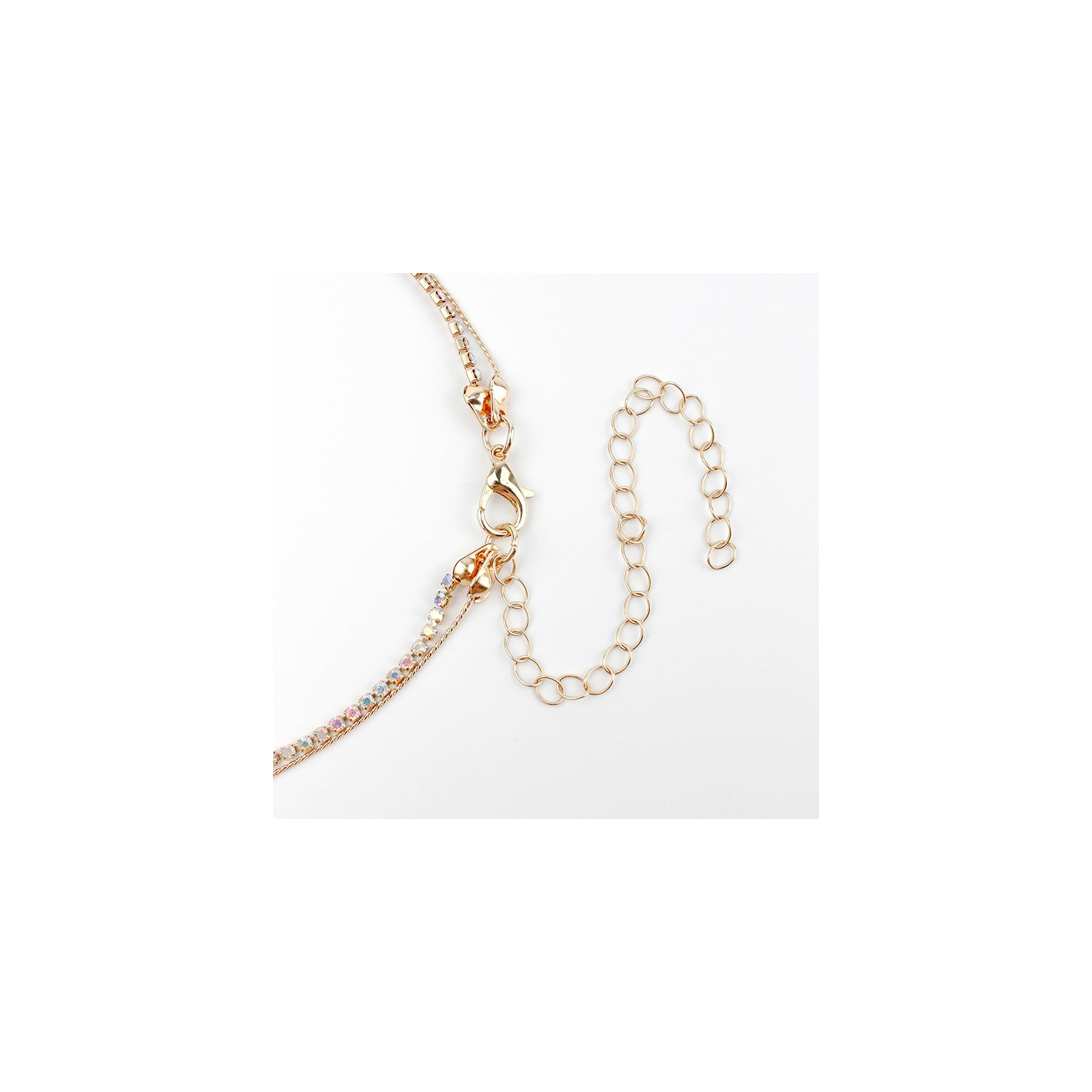 Collar corto de doble caída de cadena diferenciada de strass tornasol con dije exclusivo de ccb dorado.