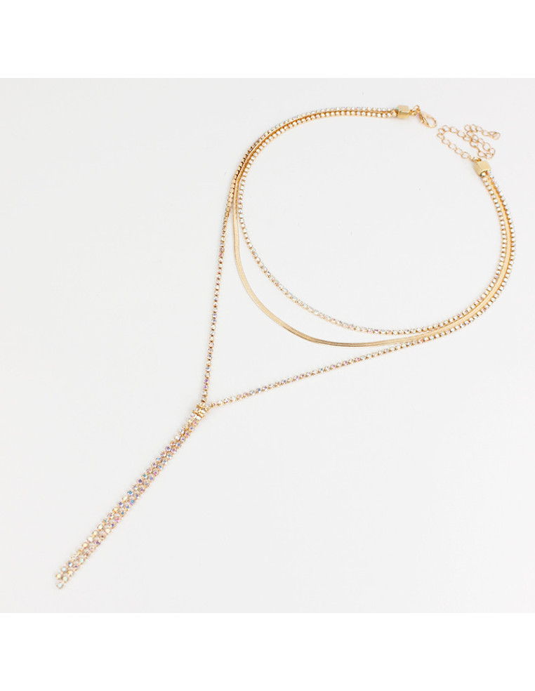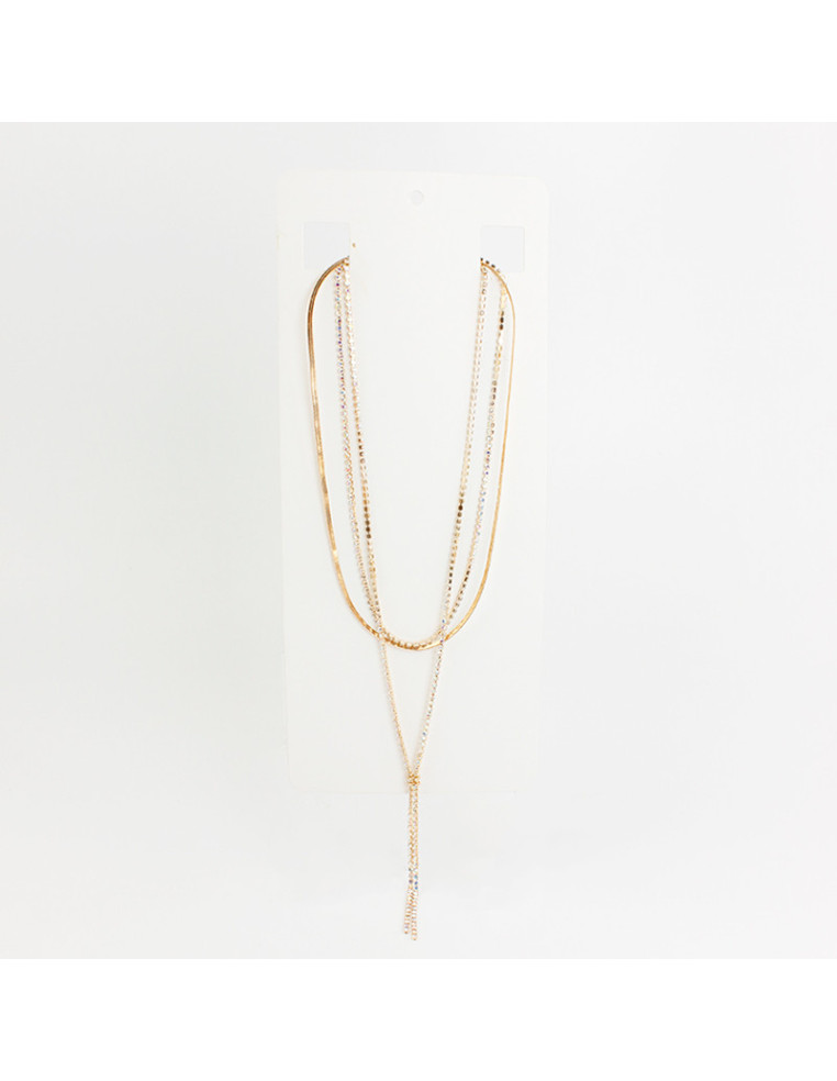 Collar corbatero de triple caída de cadenas diferenciadas, combinadas con cadenas de strass.