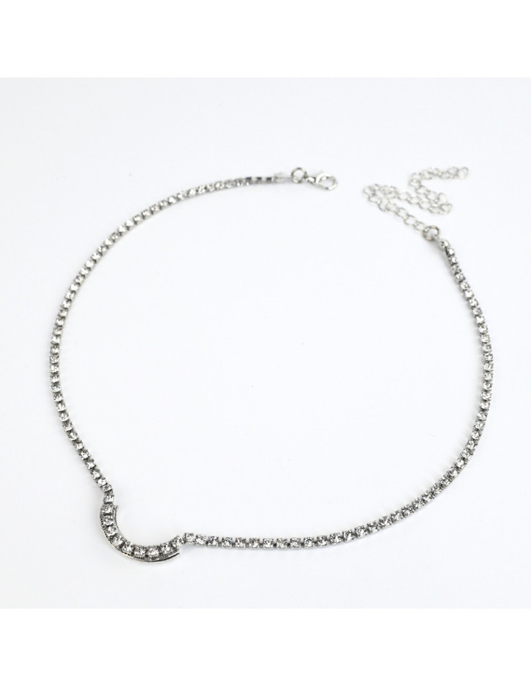 Collar de cadena de strass diferenciada.Medida: 36cm de largo, y diámetro ajustable con cadena de enganche de 10cm.