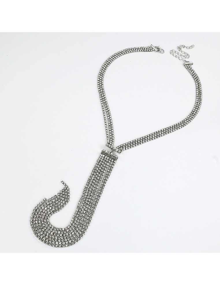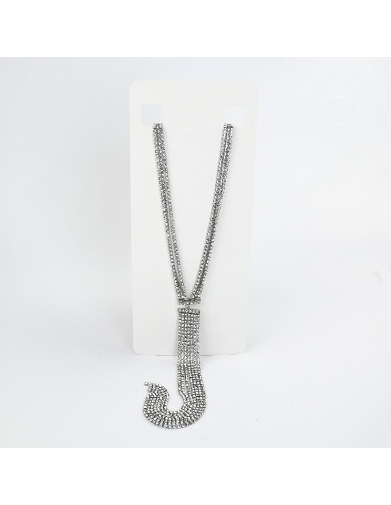 Collar de triple caída de cadenas de strass y lluvia de cadenas de strass colgantes.