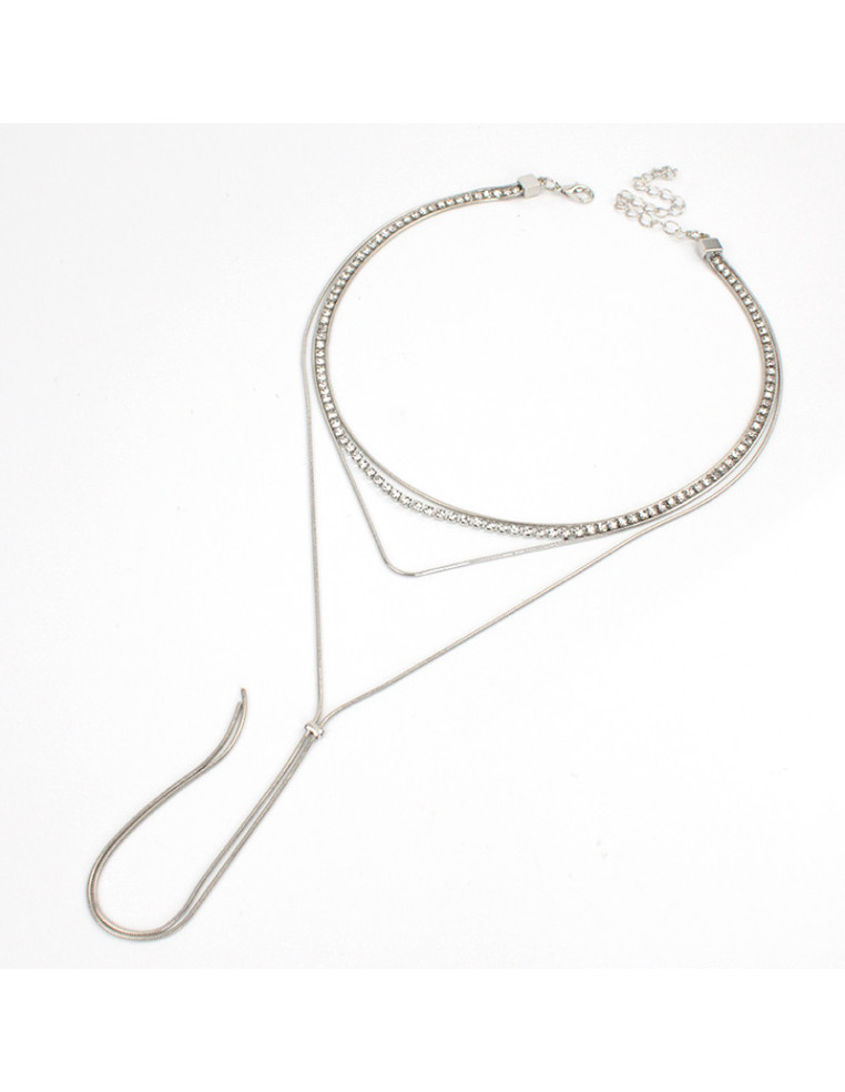 Collar corbatero de cuatro caídas de cadenas diferenciadas, una de ellas de strass.