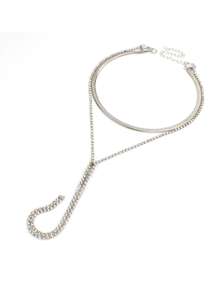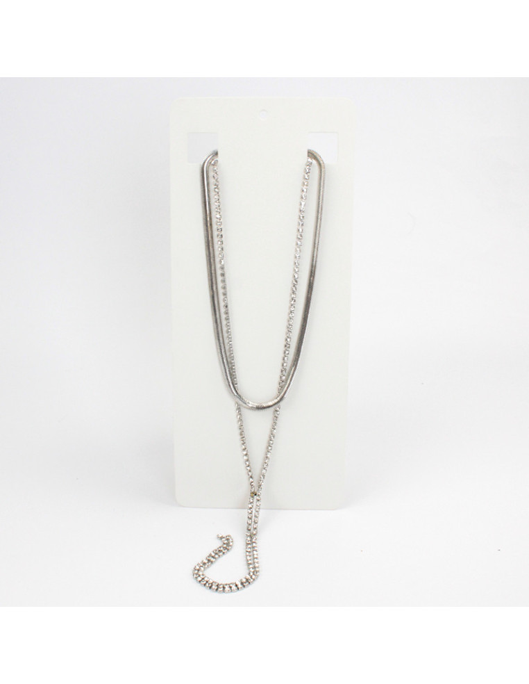 Collar corbatero de doble caída de cadenas diferenciadas, una de ellas de strass.