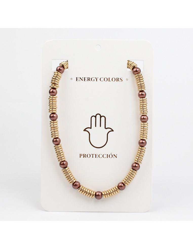Collar flexible de lenga con bolitas de vidrio energéticas, con piezas pasantes de CCB dorado.