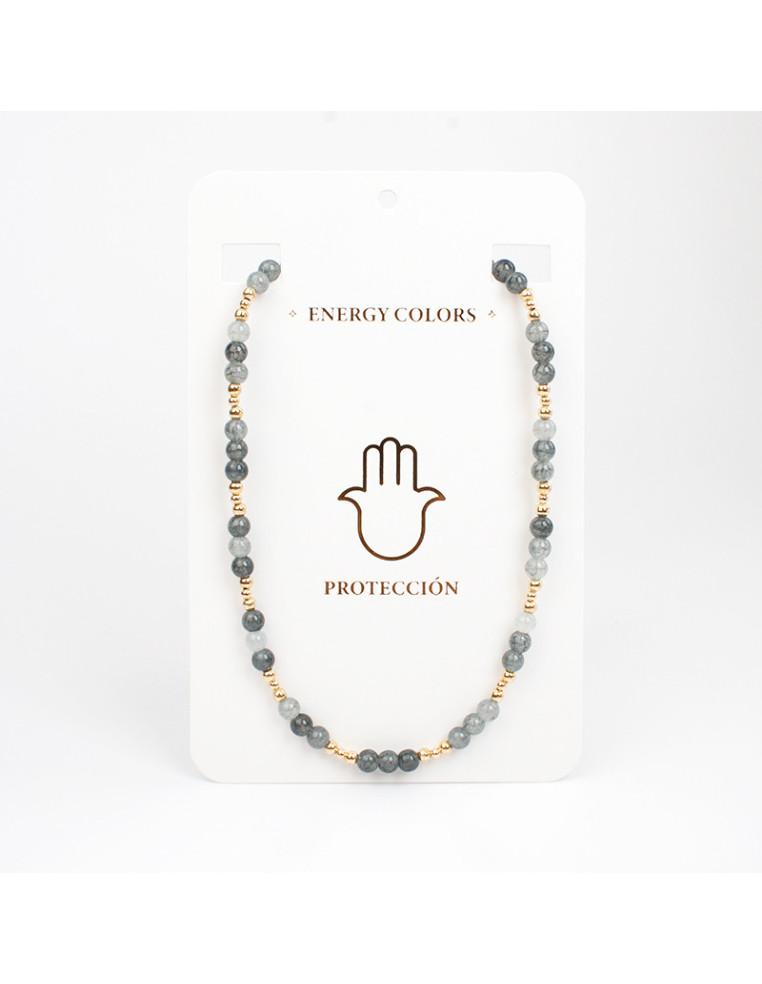 Collar flexible de bolitas de vidrio energéticas con piezas de CCB doradas.
