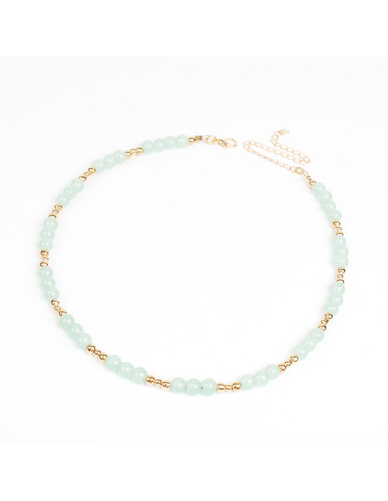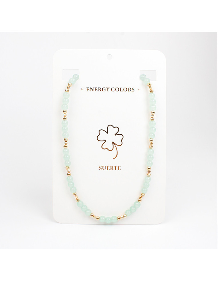 Collar flexible de bolitas de vidrio energéticas con piezas de CCB doradas.