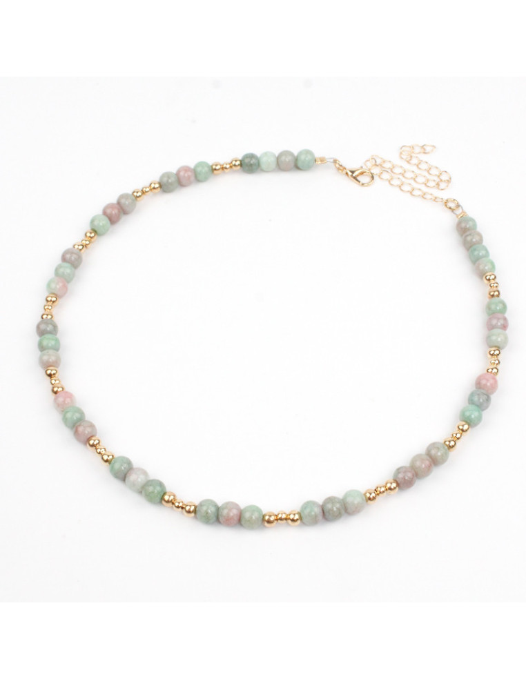 Collar flexible de bolitas de vidrio energéticas con piezas de CCB doradas.