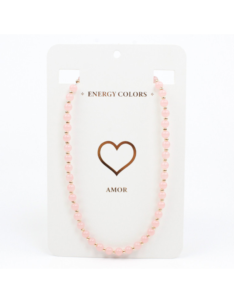 Collar flexible de lenga con bolitas de vidrio energéticas y pasantes de CCB. Medidas: 37cm de largo, ajustable con cadena de enganche de 10cm.