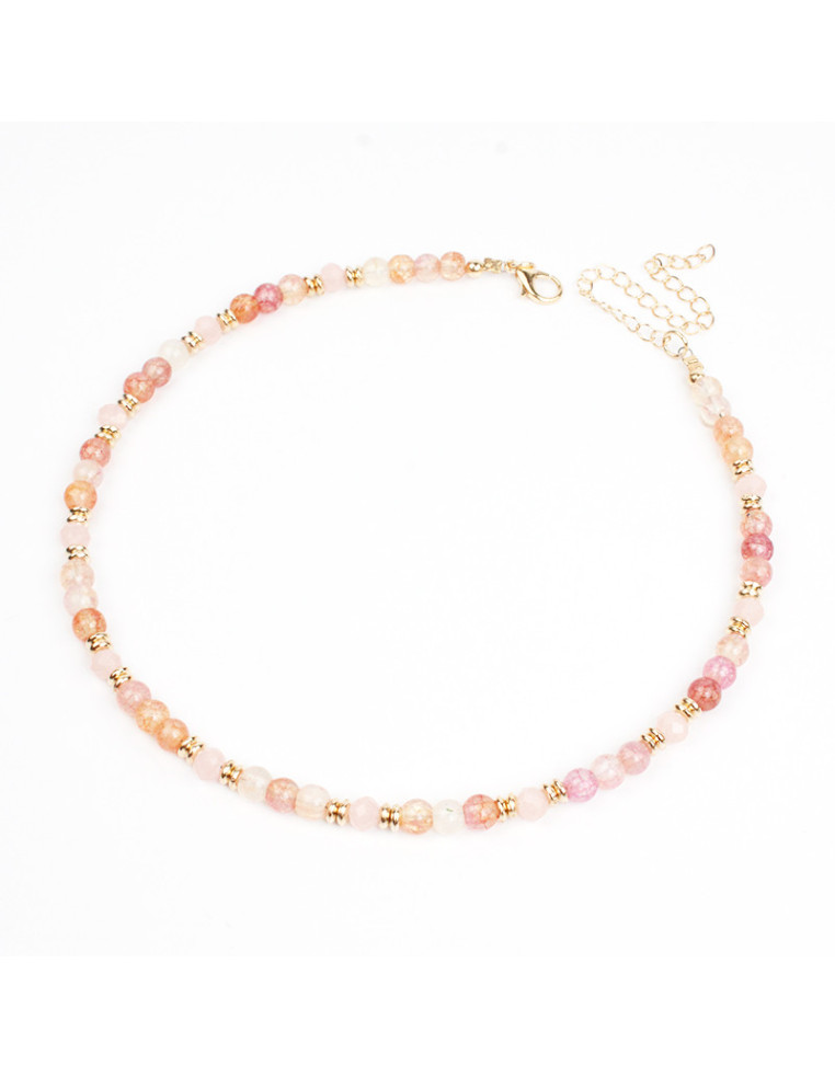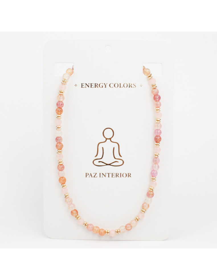 Collar energético flexible de lenga con cuentas de vidrio energy, rocas de cristal y pasantes de CCB dorados.