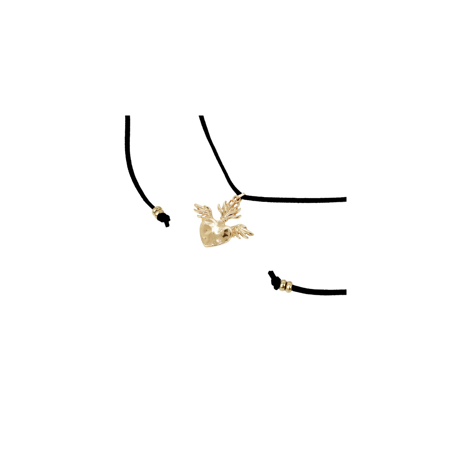 Collar corbatero de gamuza con dije exclusivo dorado.