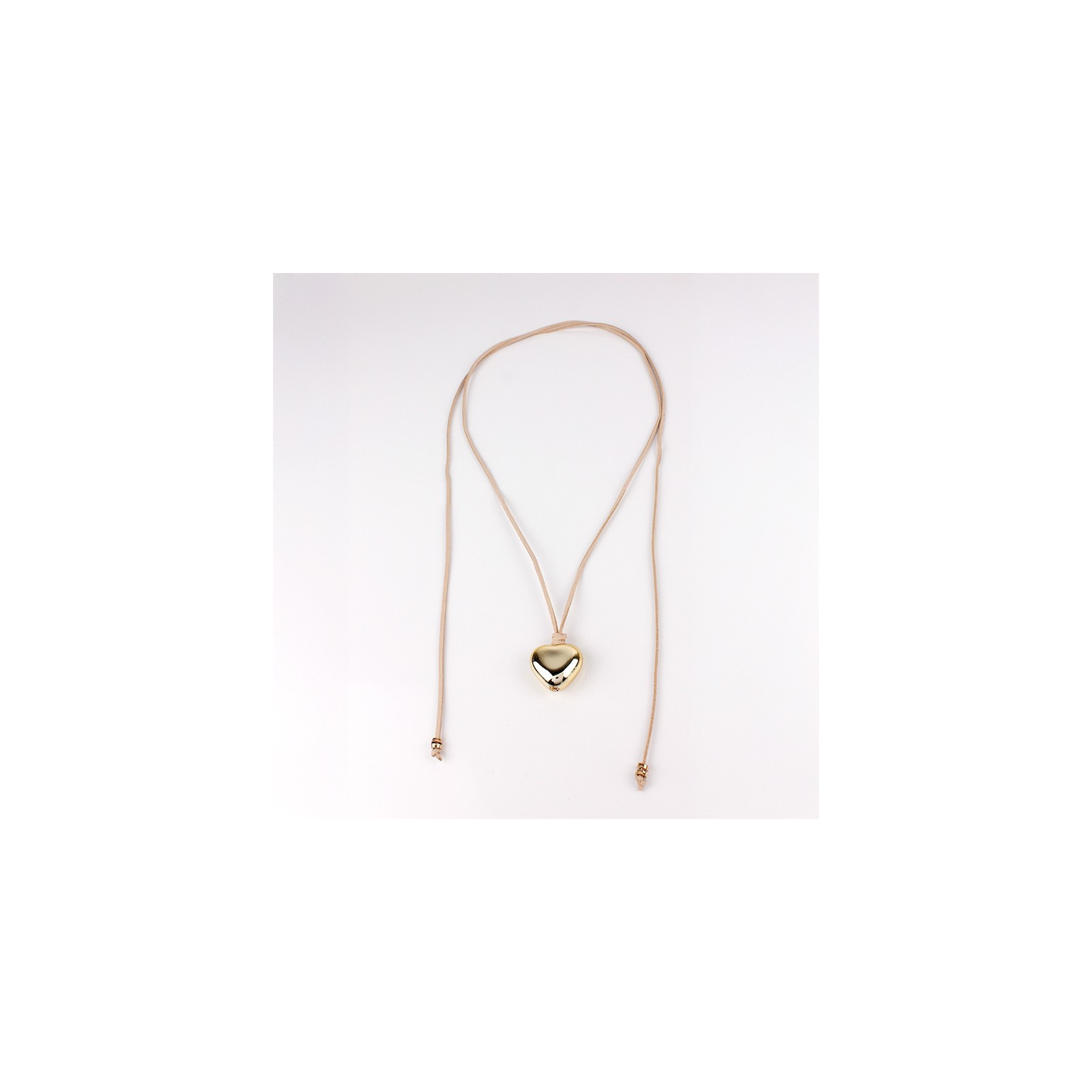 Collar corbatero de gamuza múltiples vueltas con dije exclusivo con forma corazón dorado de ccb y terminaciones en punteras.