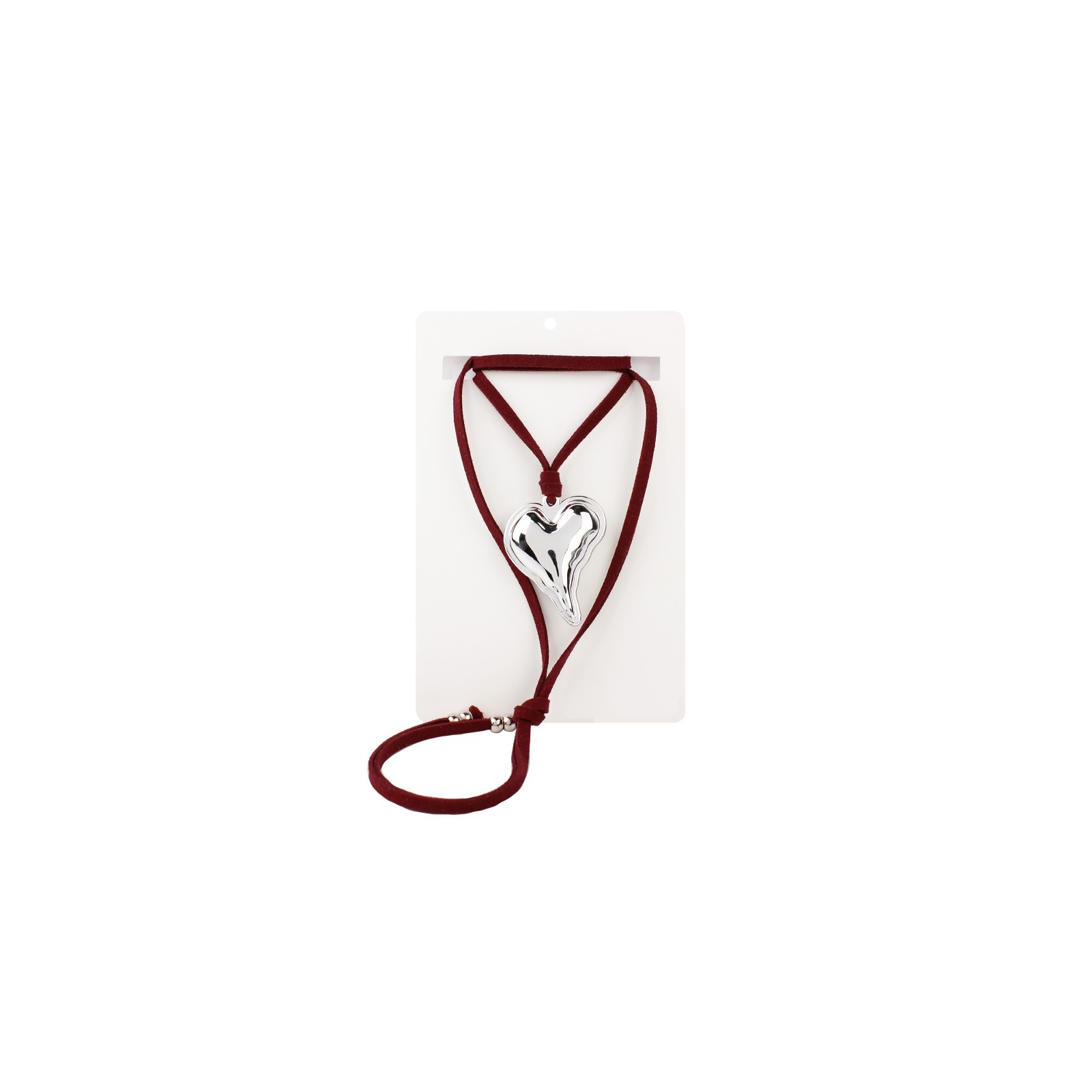 Collar corbatero de gamuza de múltiples vueltas con dije exclusivo de ccb con forma de corazón y terminaciones en punteras.