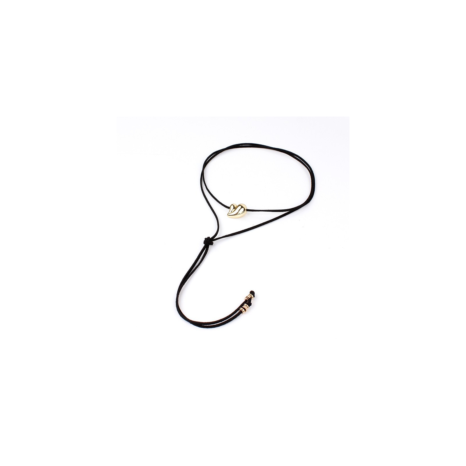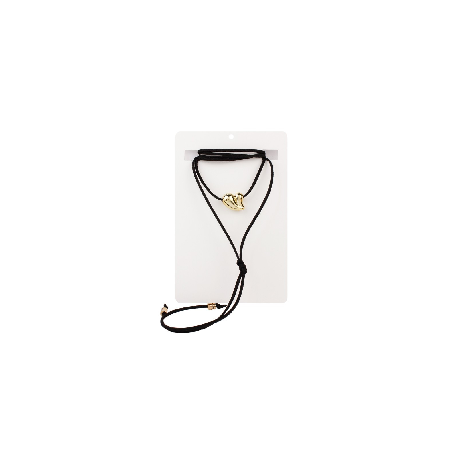 Collar corbatero de gamuza múltiples vueltas con dije exclusivo en forma de corazón dorado. Terminaciones en punteras.