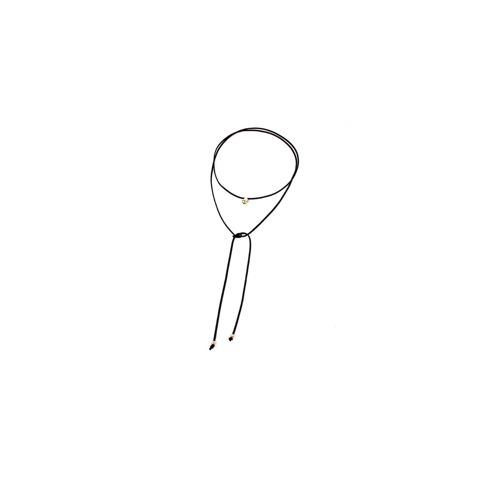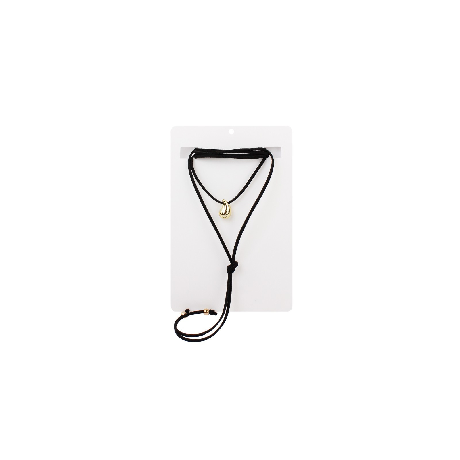 Collar de gamuza de múltiples vueltas con dije exclusivo con forma de gota y terminaciones en punteras.