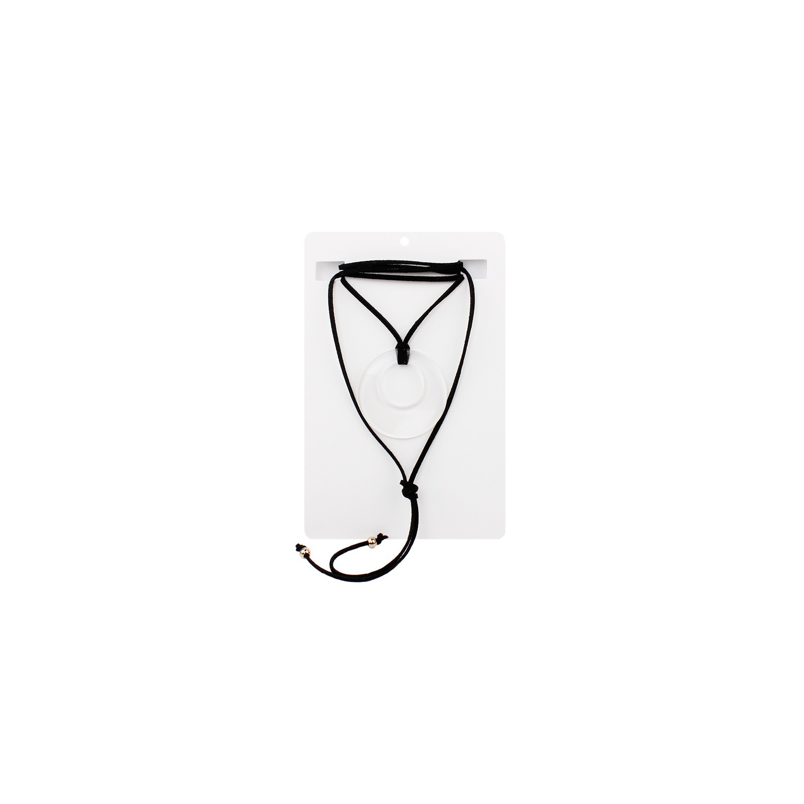 Colla de múltiples vueltas de gamuza con dije exclusivo de acrílico cristal y terminaciones en punteras.