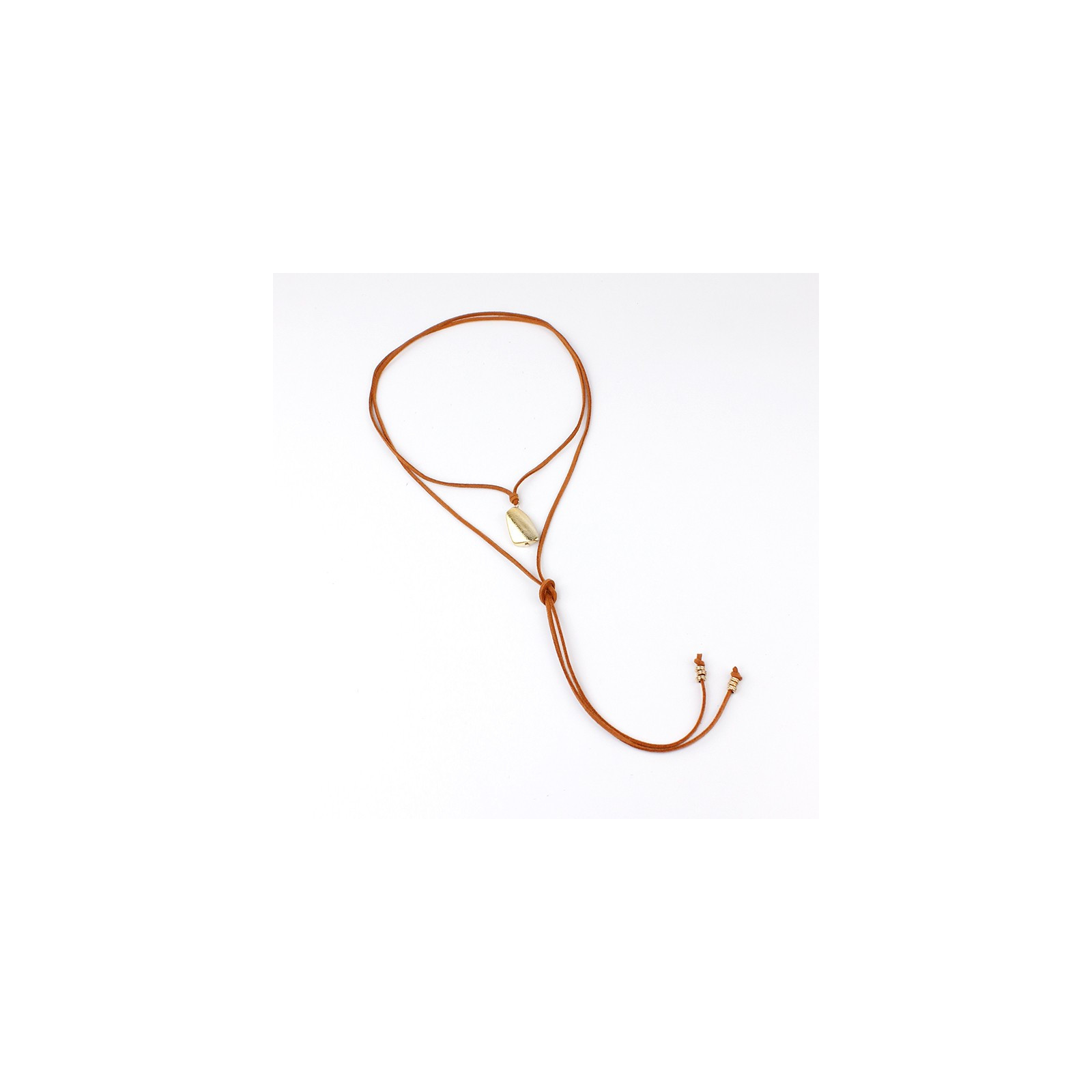 Collar de múltiples vueltas de gamuza con dije exclusivo de ccb con forma orgánica texturizada y terminaciones en punteras.