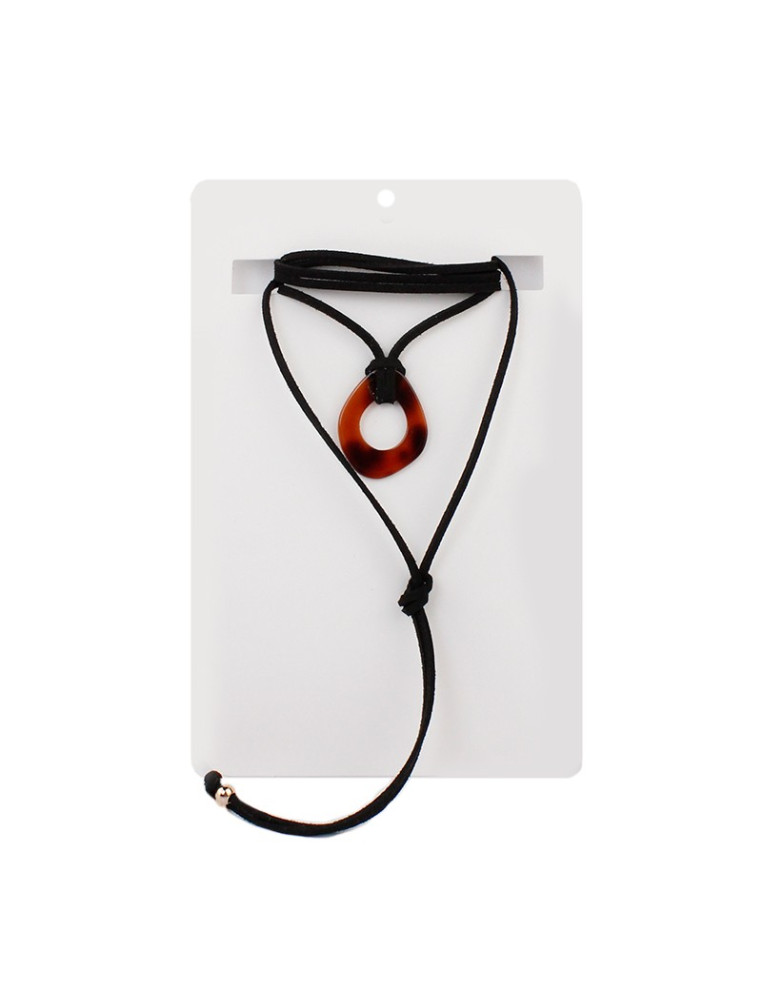 Collar de múltiples vueltas de gamuza con pieza exclusiva de forma irregular de acrílico y terminales en punteras.