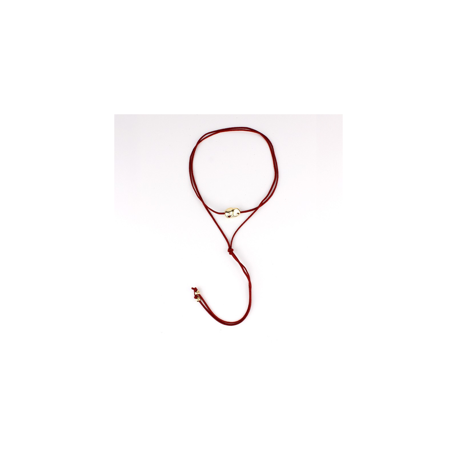 Collar de múltiples vueltas de gamuza, con dije exclusivo orgánico de ccb dorado y terminales en punteras.