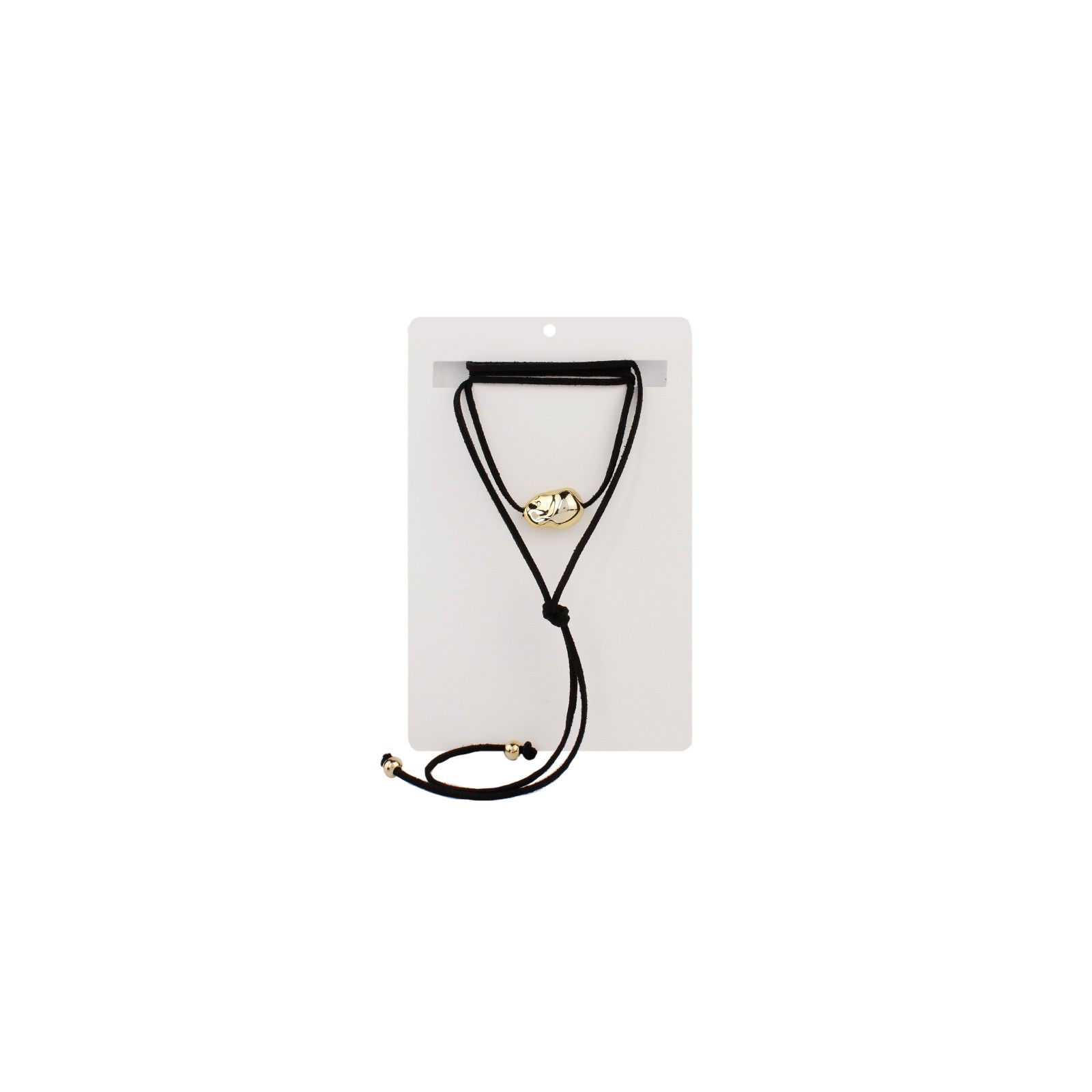Collar de múltiples vueltas de gamuza, con dije exclusivo orgánico de ccb dorado y terminales en punteras.