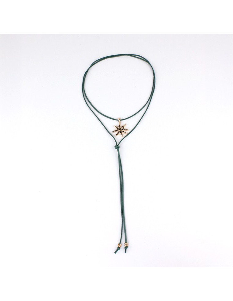 Collar de múltiples vueltas de gamuza con dije exclusivo con forma de sol martillado y terminaciones en punteras.