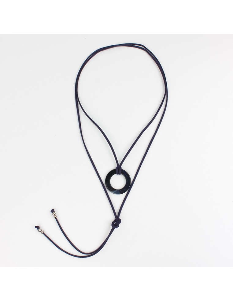 Collar de múltiples vueltas de gamuza con pieza exclusiva de forma circular y terminales en punteras.