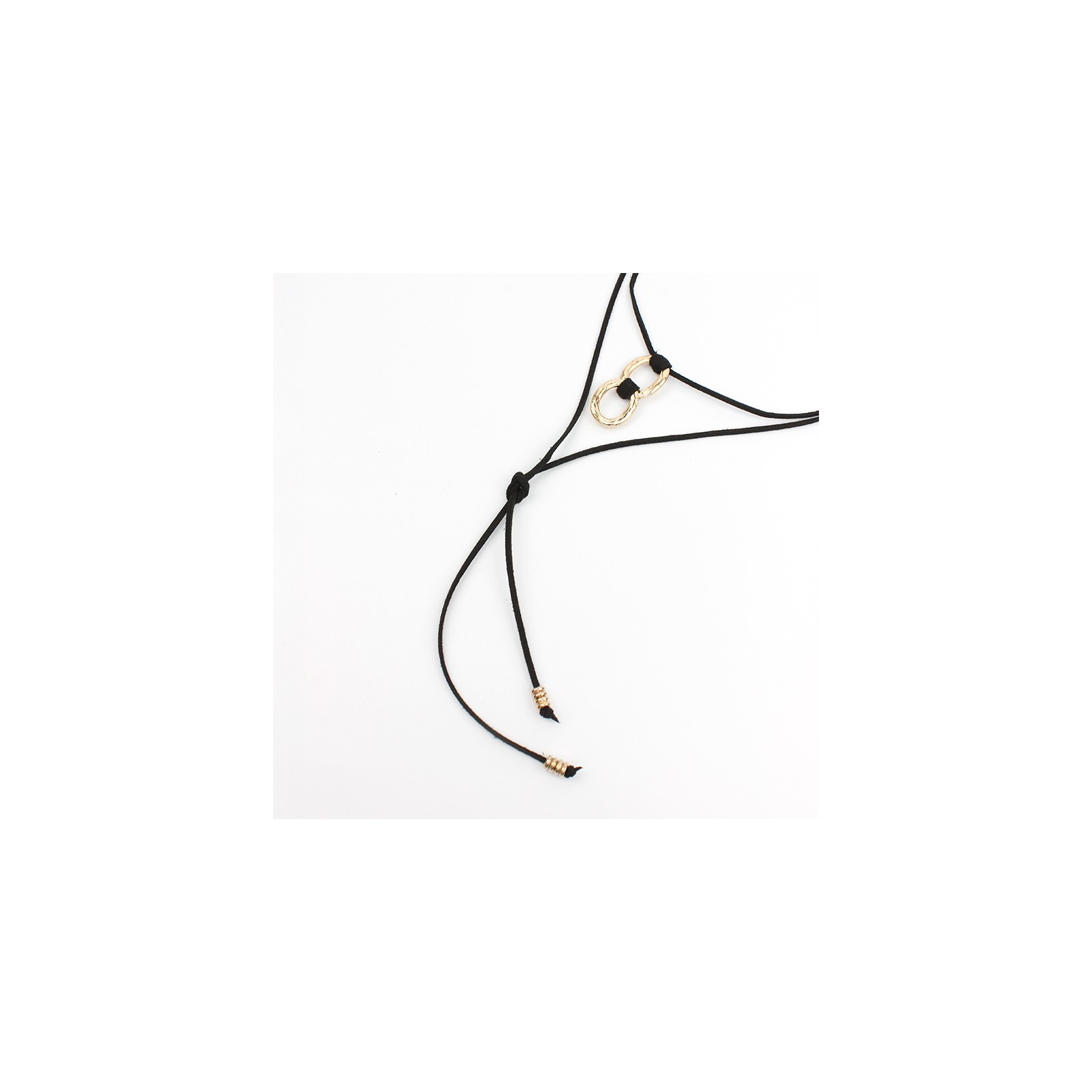 Collar de gamuza de múltiples vueltas con eslabones exclusivos de forma oval y terminales en punteras.
