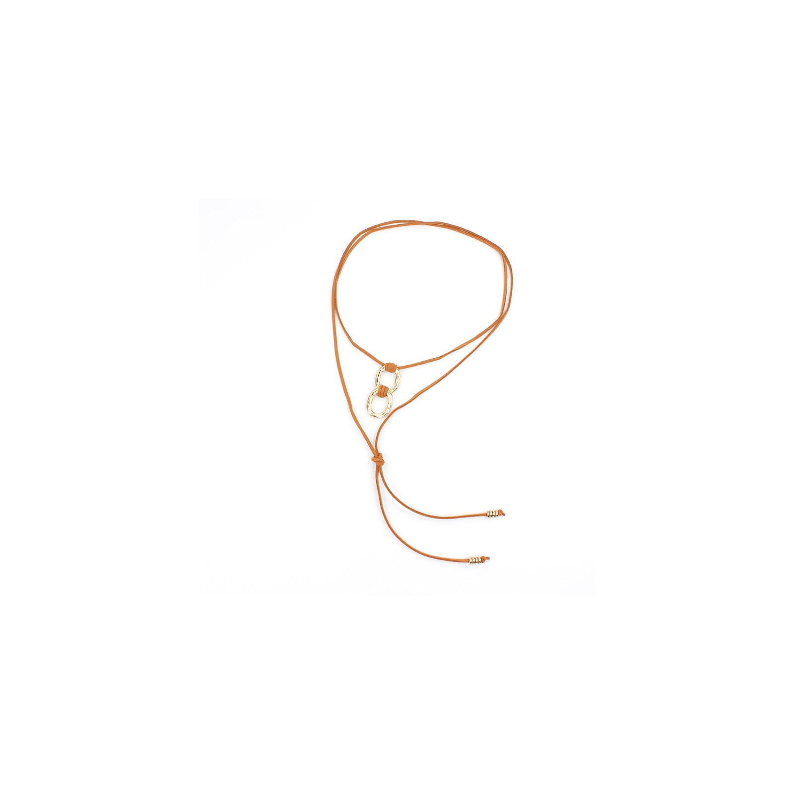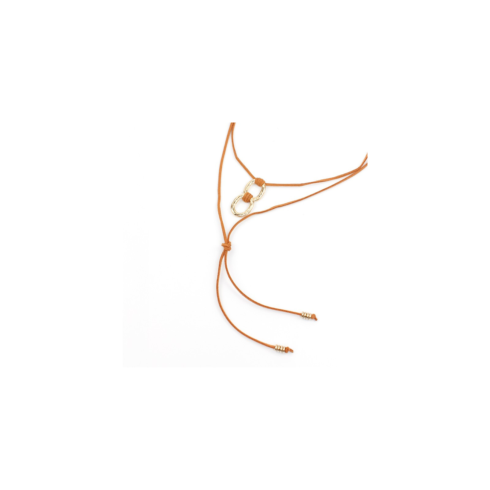 Collar de gamuza de múltiples vueltas con eslabones exclusivos de forma oval y terminales en punteras.