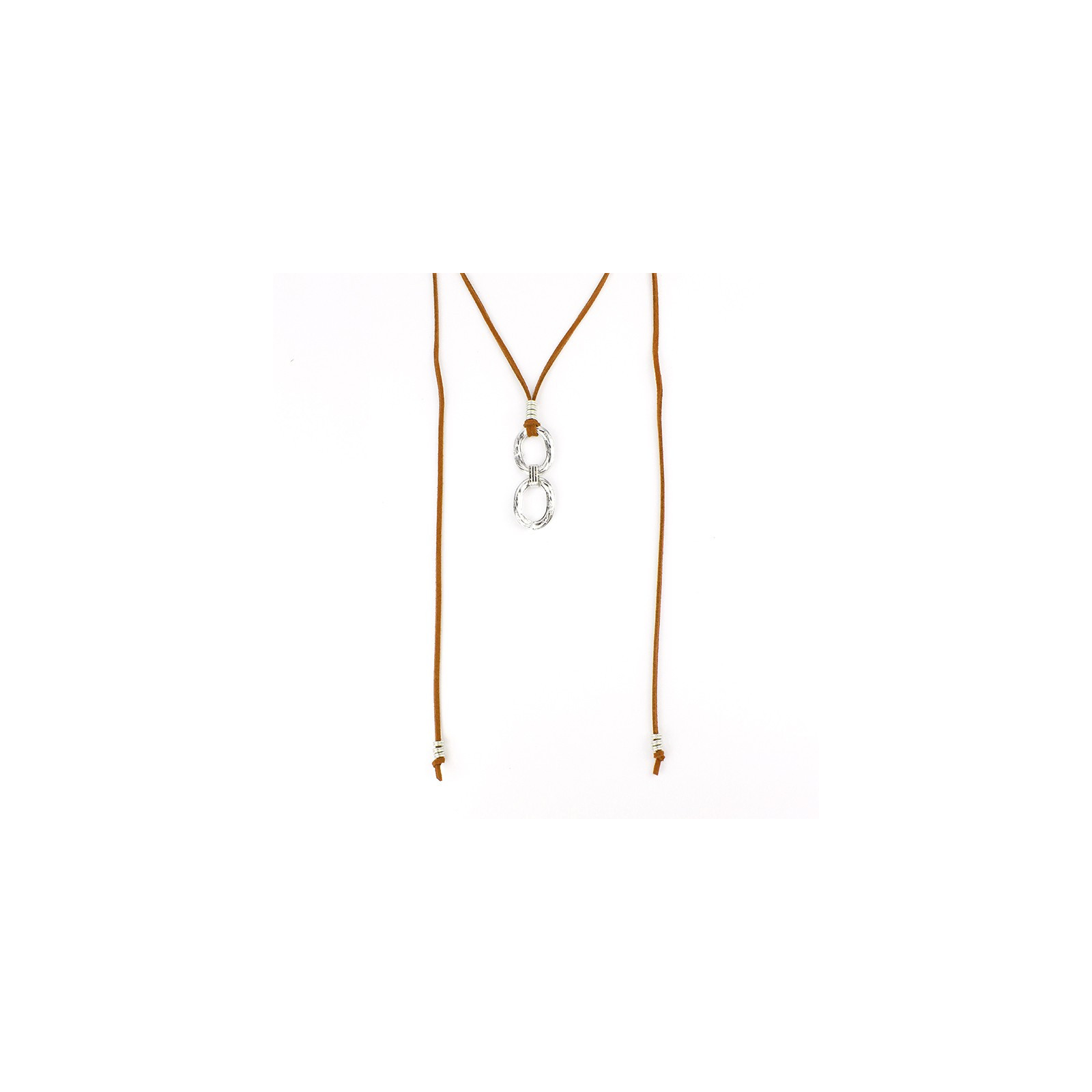 Collar de doble gamuza,con eslabones exclusivos colgantes y terminales en punteras.