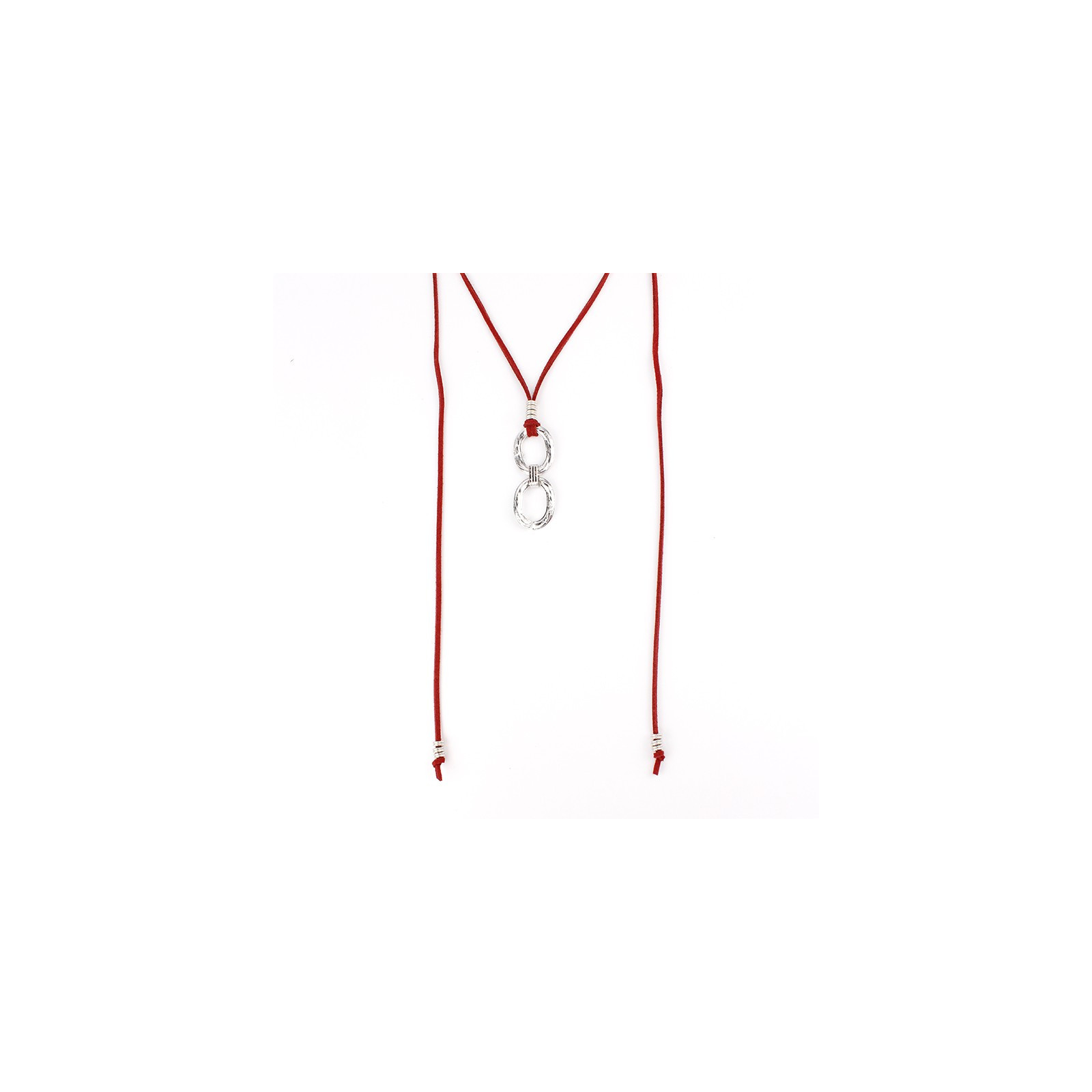 Collar de doble gamuza,con eslabones exclusivos colgantes y terminales en punteras.