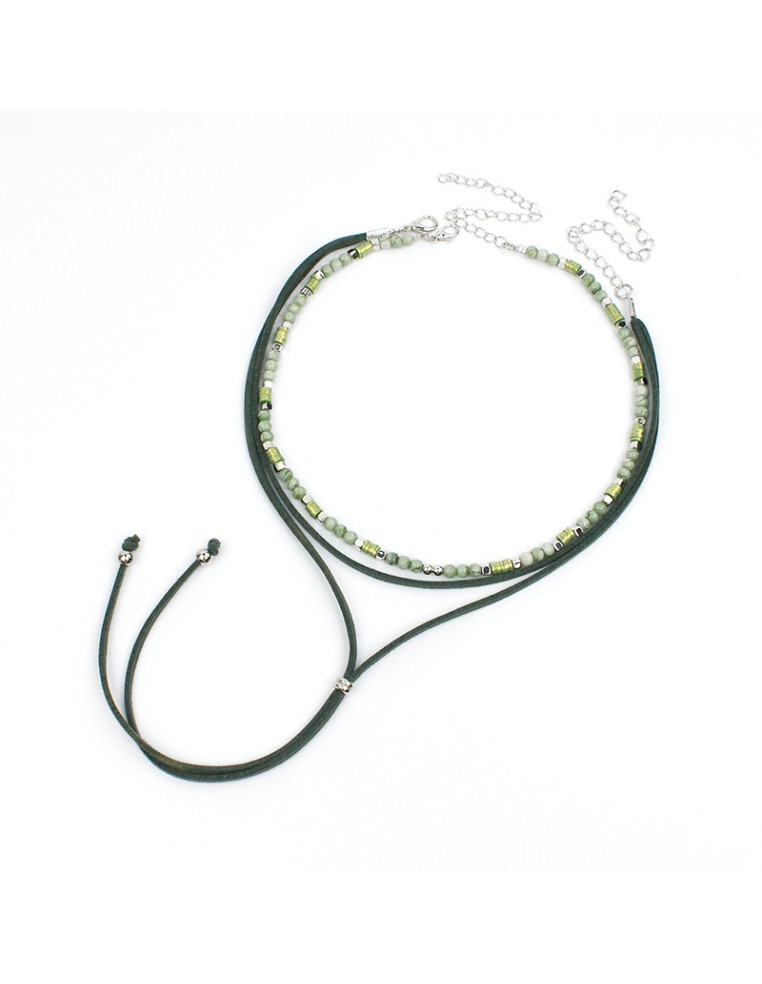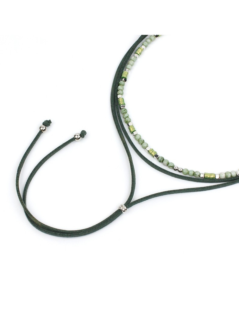 Set de dos collares, corbatero de gamuza y de piezas de vidrio con lentejuelas exclusivas de fimo.