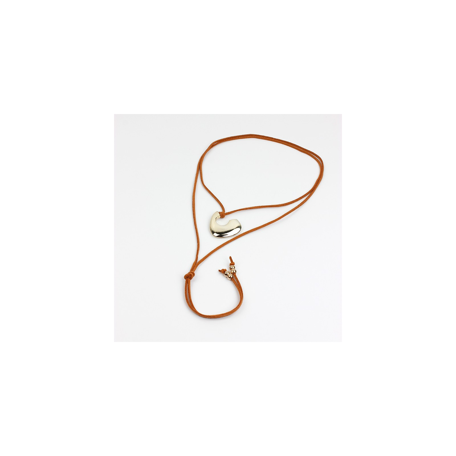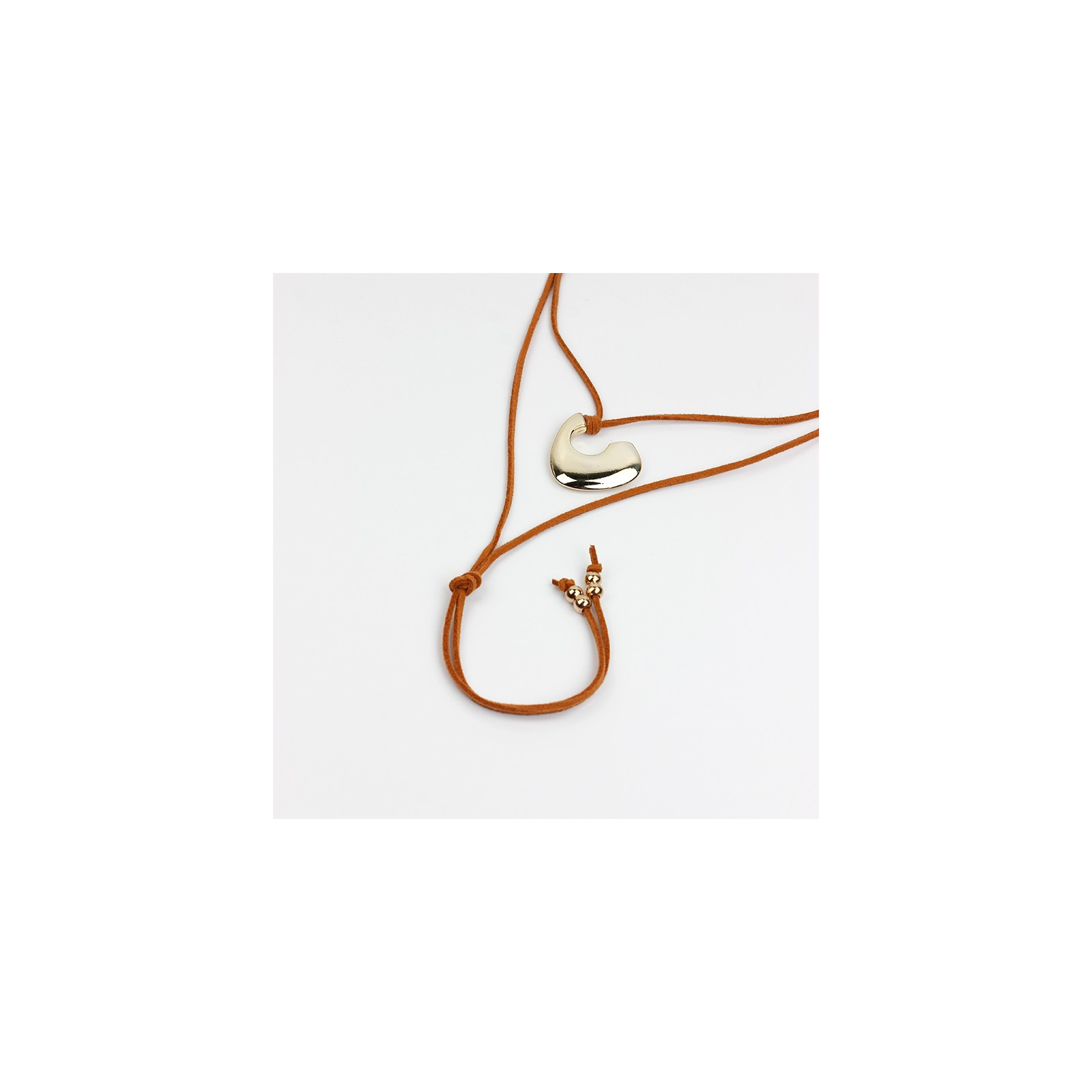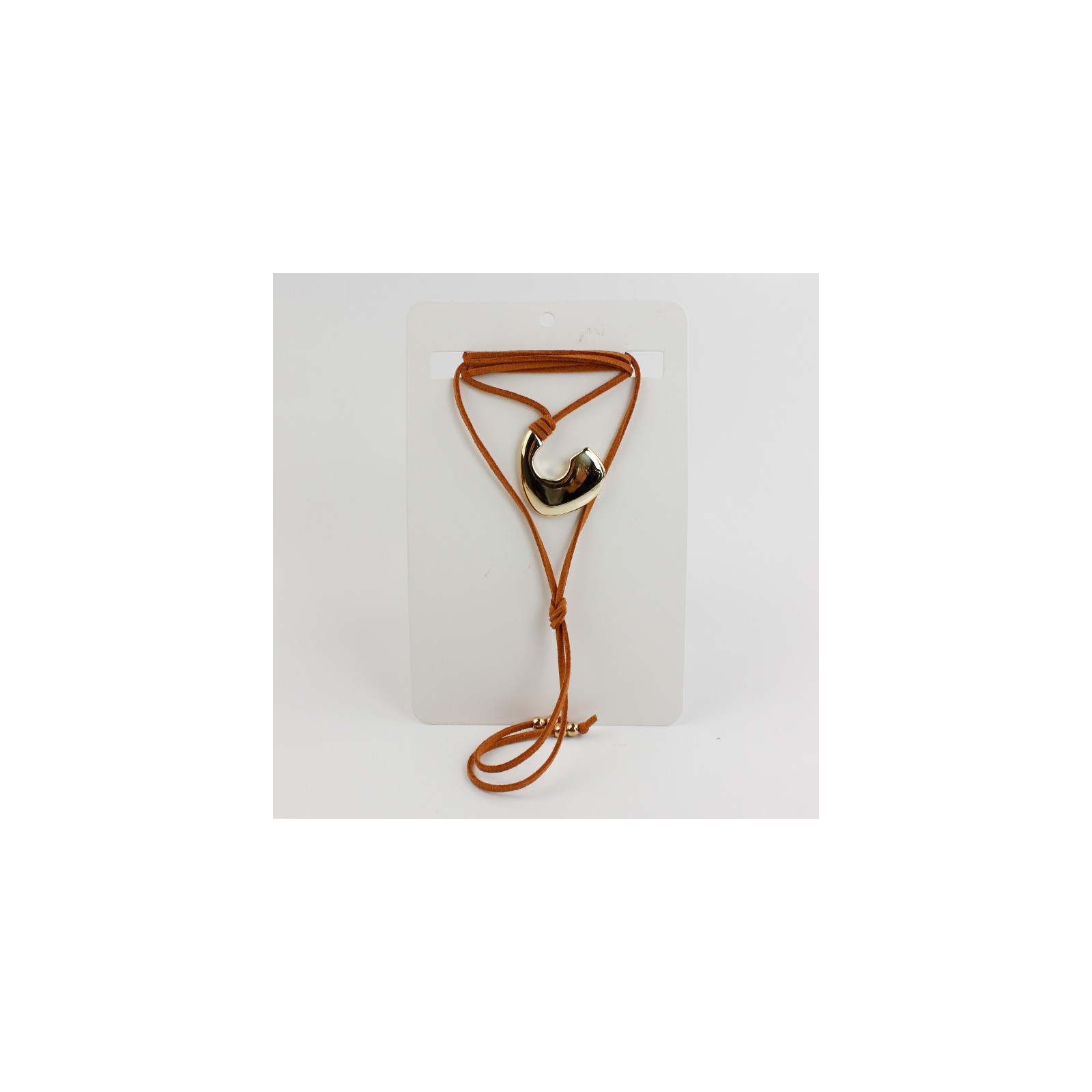 Collar de gamuza de múltiples vueltas, con dije exclusivo de CCB dorado y terminales en punteras.