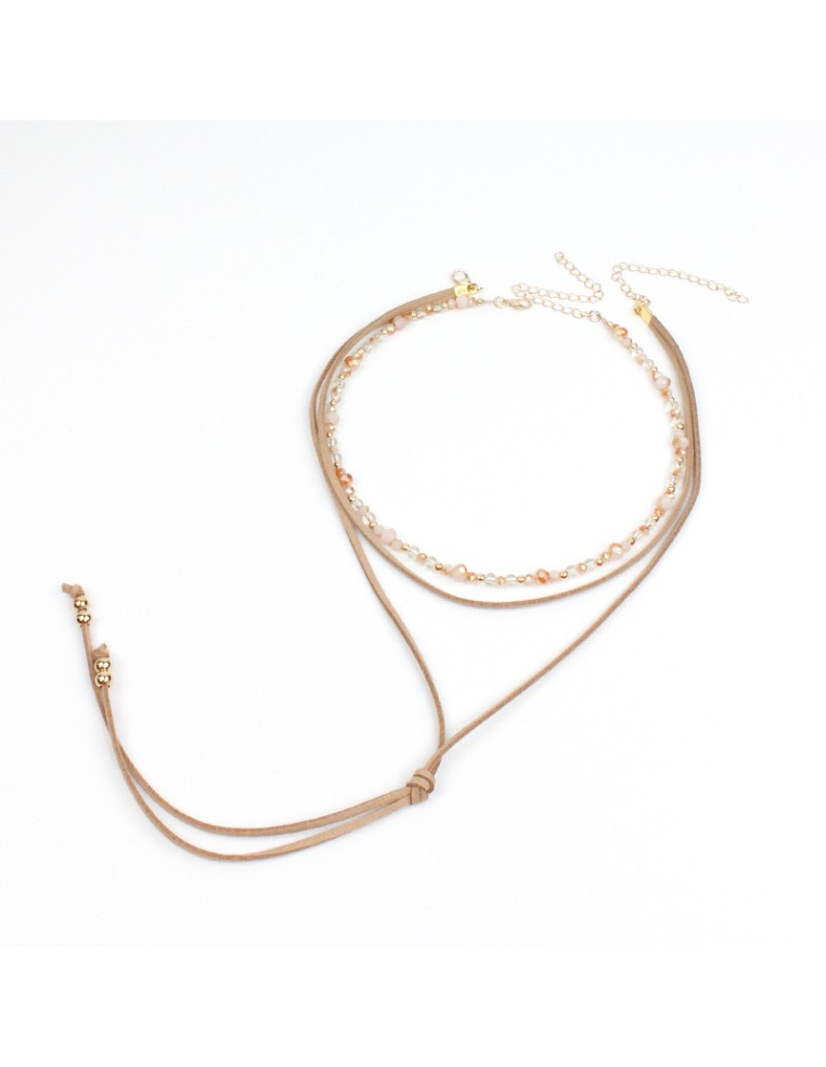 Set de dos collares de roca de cristal y corbatero de gamuza.