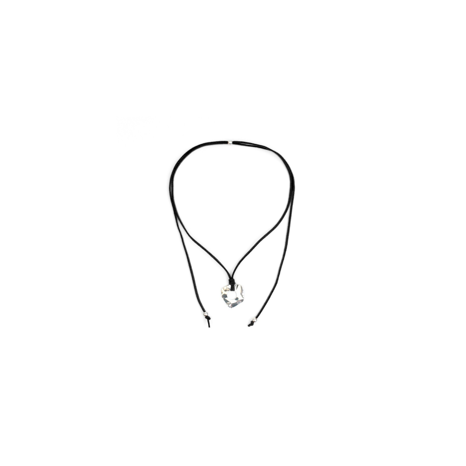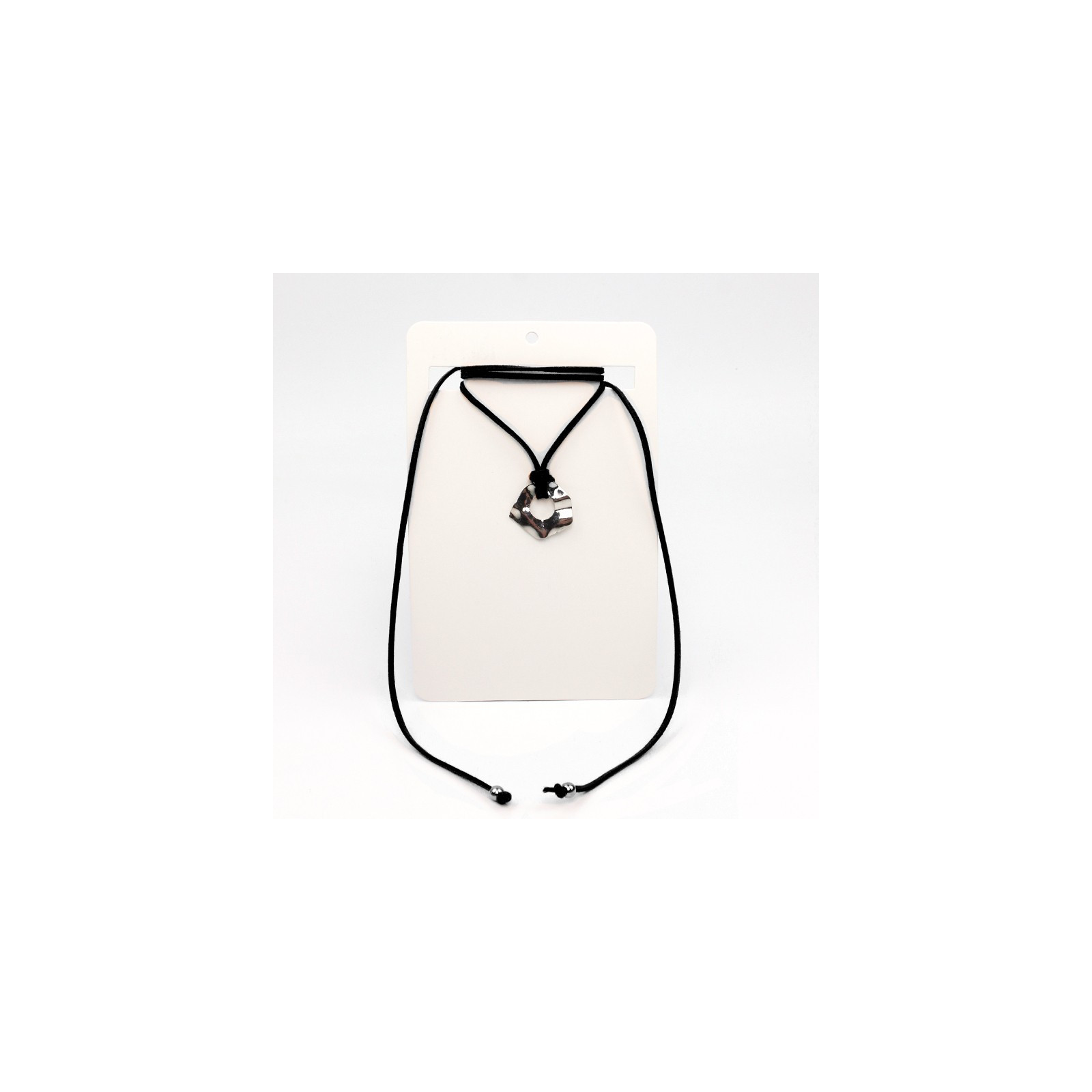 Collar de gamuza con dije exclusivo de metal, terminales en punteras y nuevo cierre regulable.