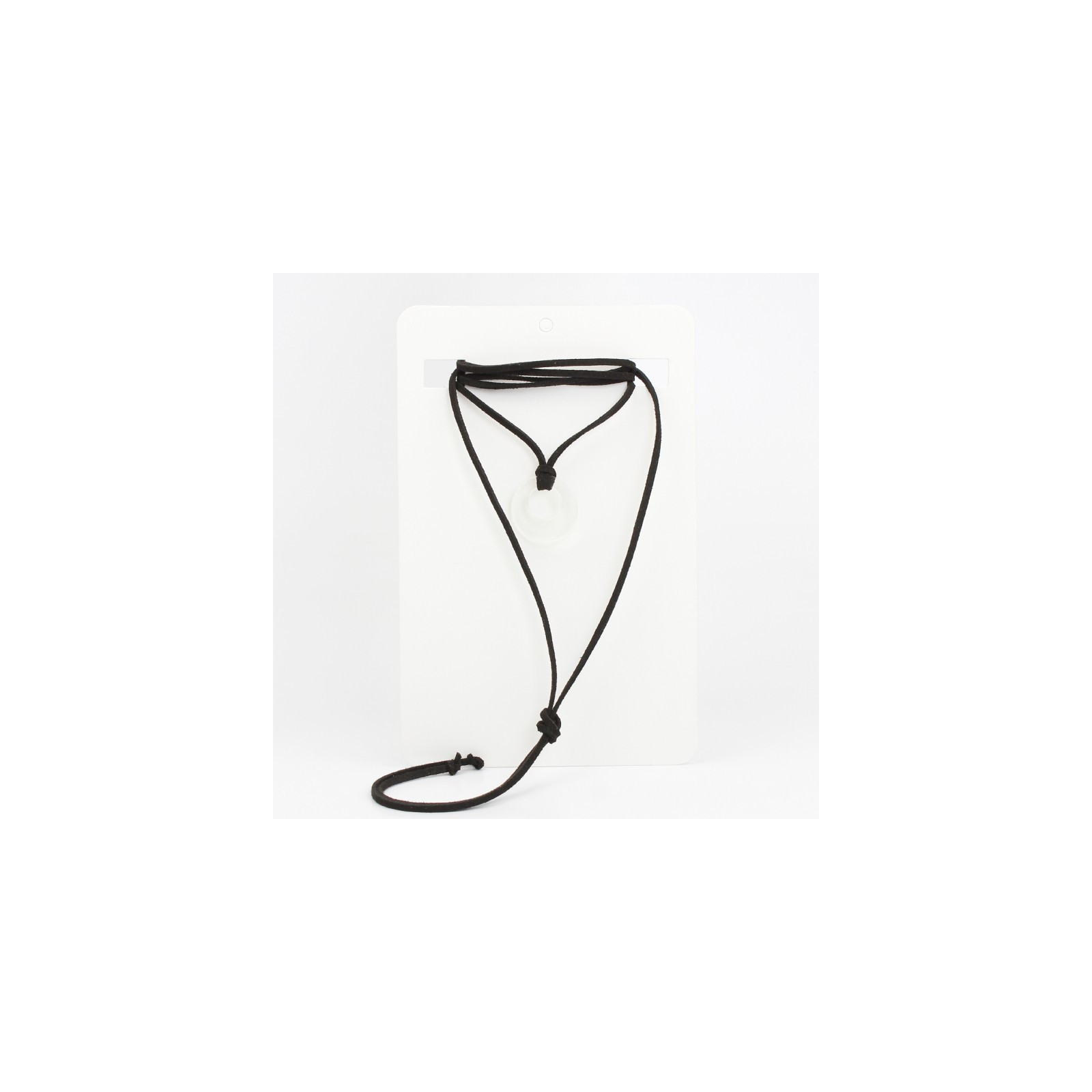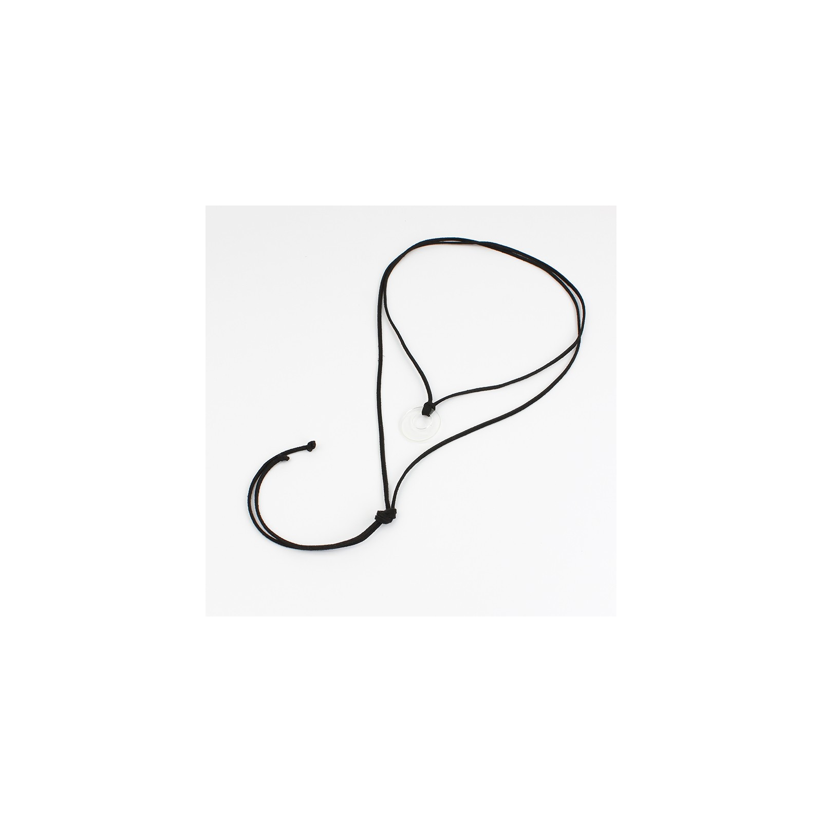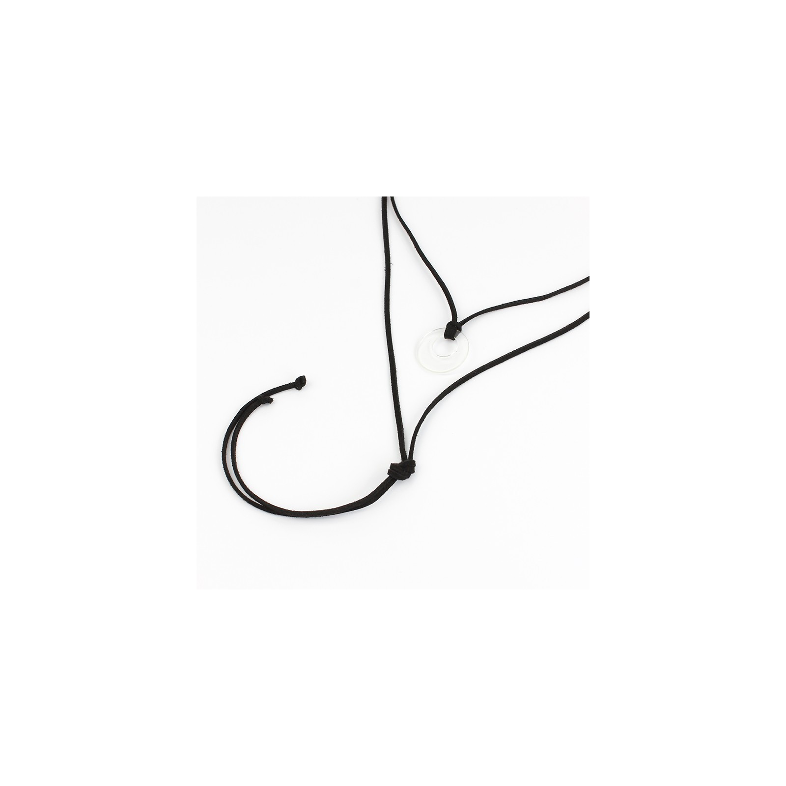 Collar de gamuza de múltiples vueltas, con dije acrílico exclusivo y terminales en punteras.