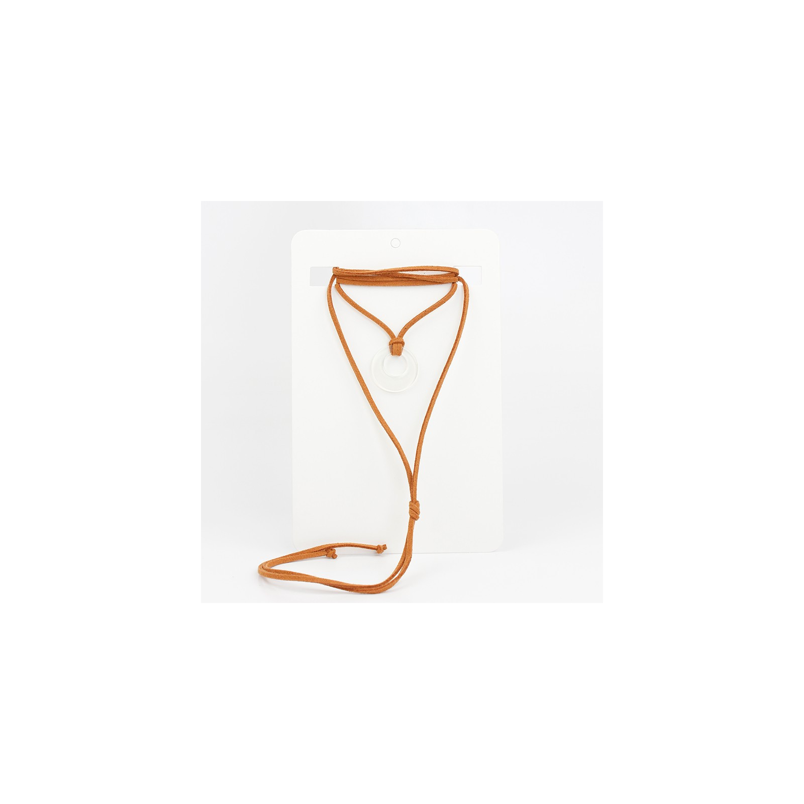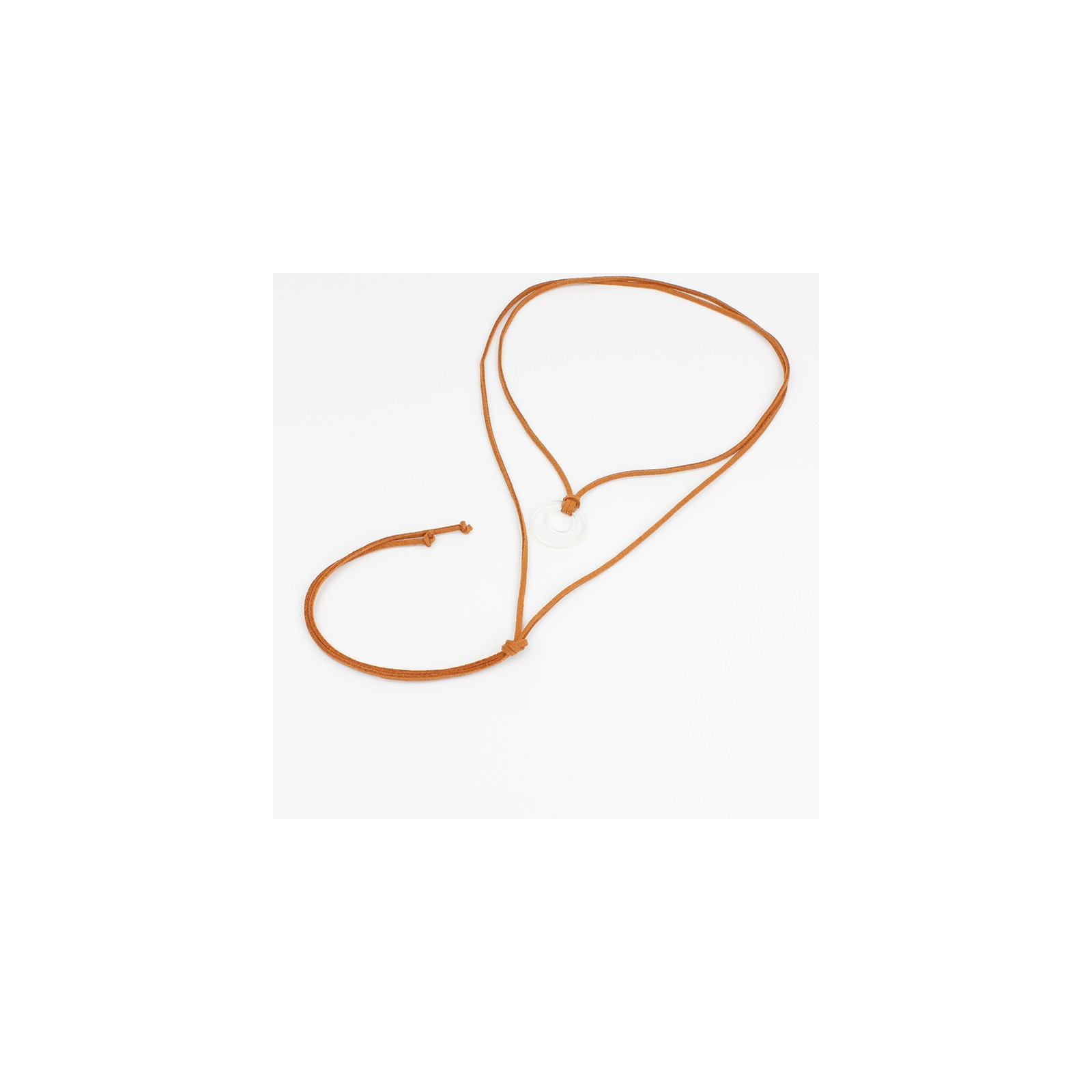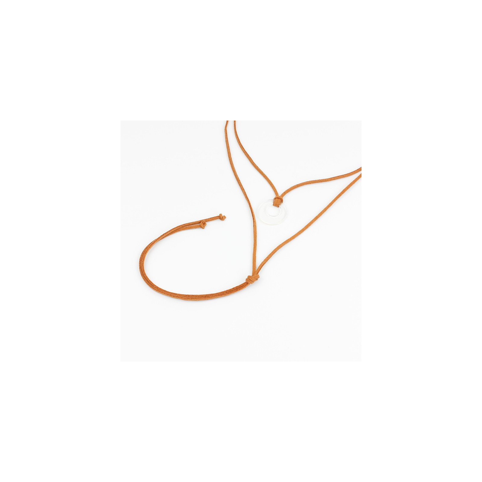 Collar de gamuza de múltiples vueltas, con dije acrílico exclusivo y terminales en punteras.