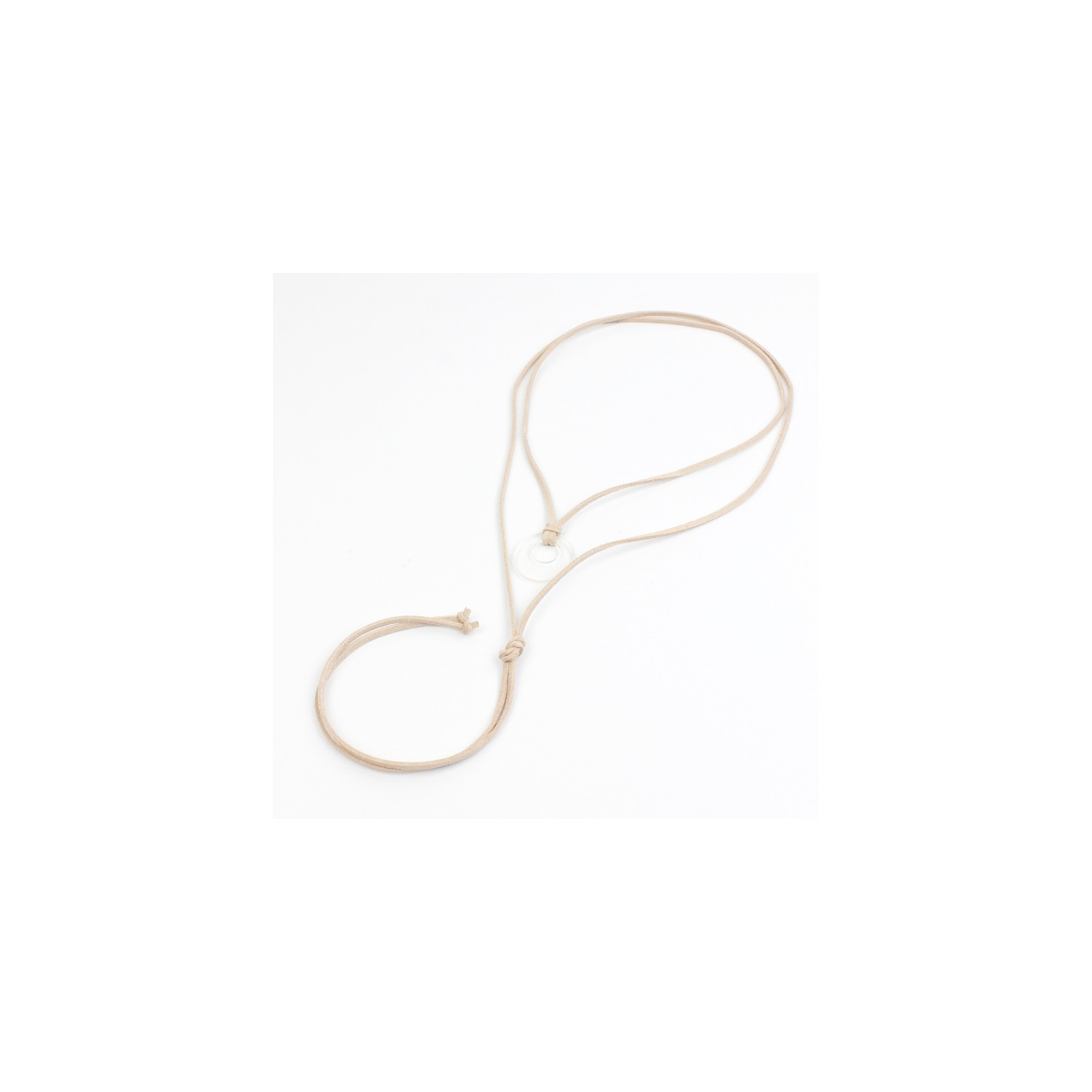 Collar de gamuza de múltiples vueltas, con dije acrílico exclusivo y terminales en punteras.
