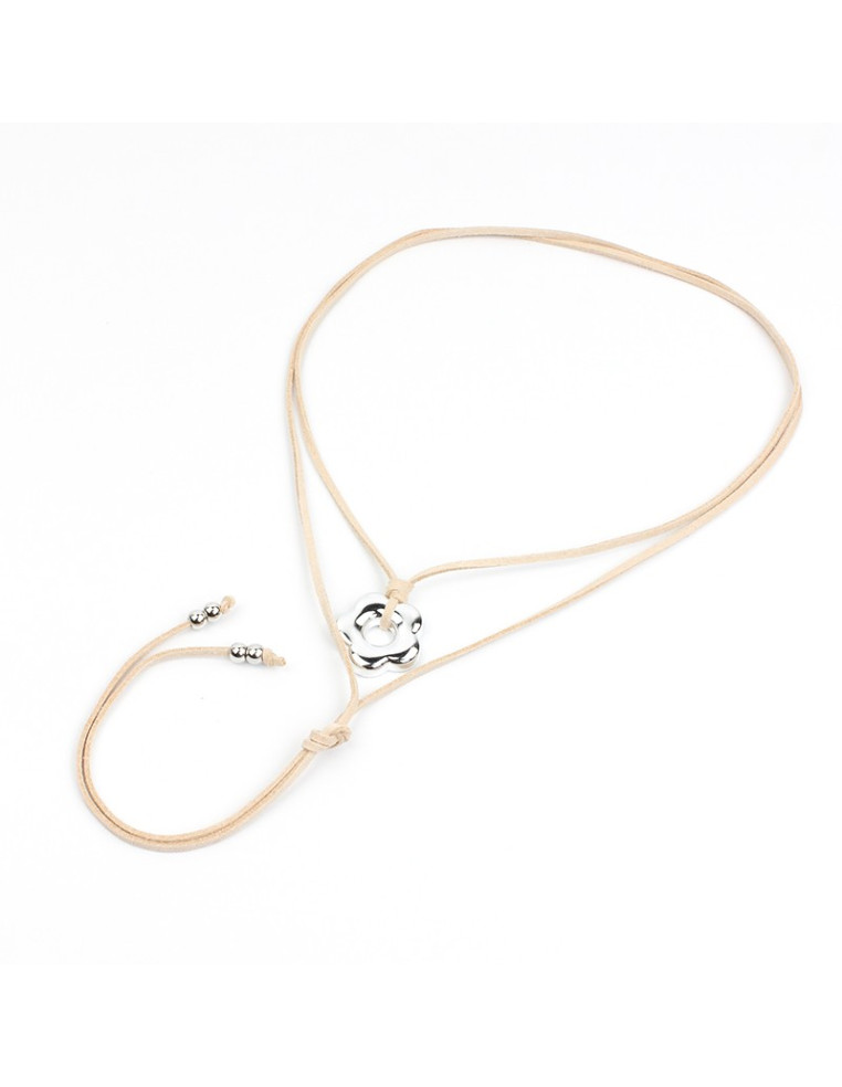 Collar de gamuza de múltiples vueltas, con dije exclusivo de CCB con forma de flor y terminales en punteras.