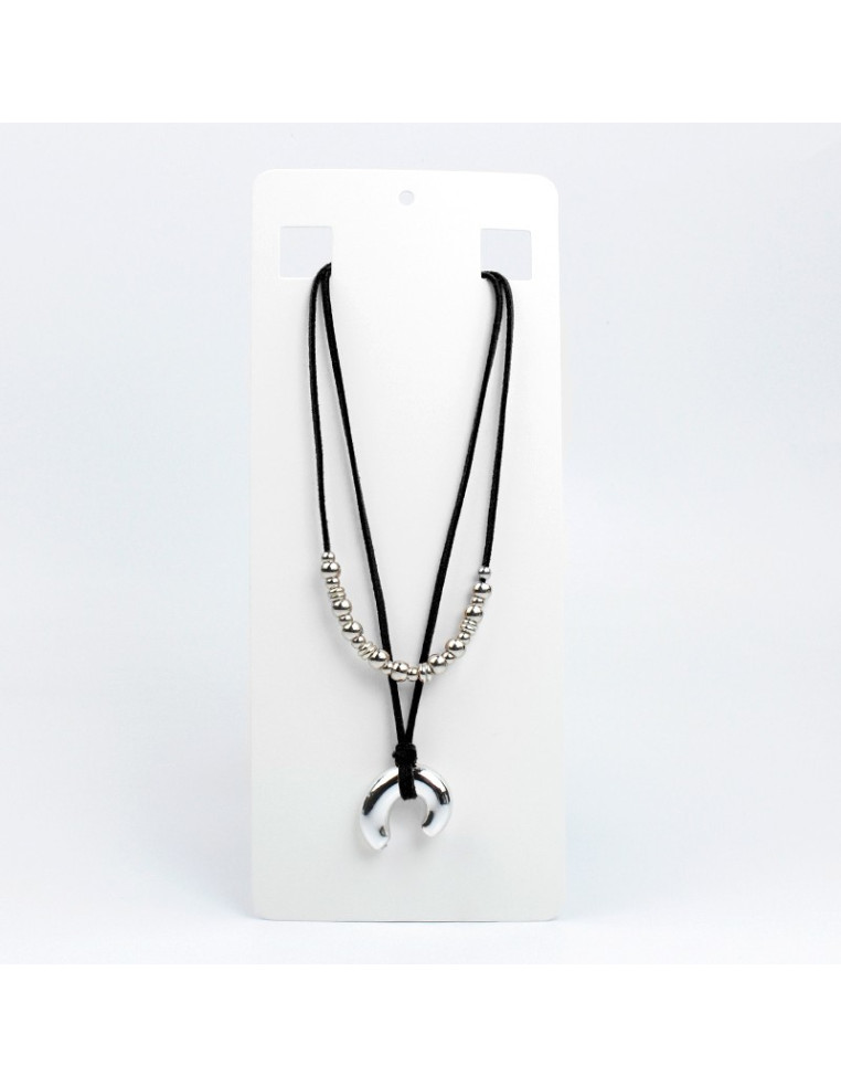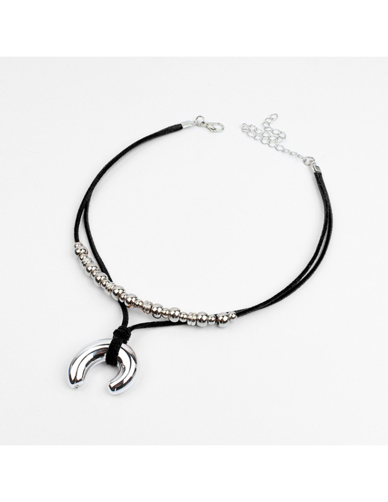 Collar de doble gamuza, una de ellas intervenida con piezas pasantes de CCB, la otra con dije exclusivo de CCB.
