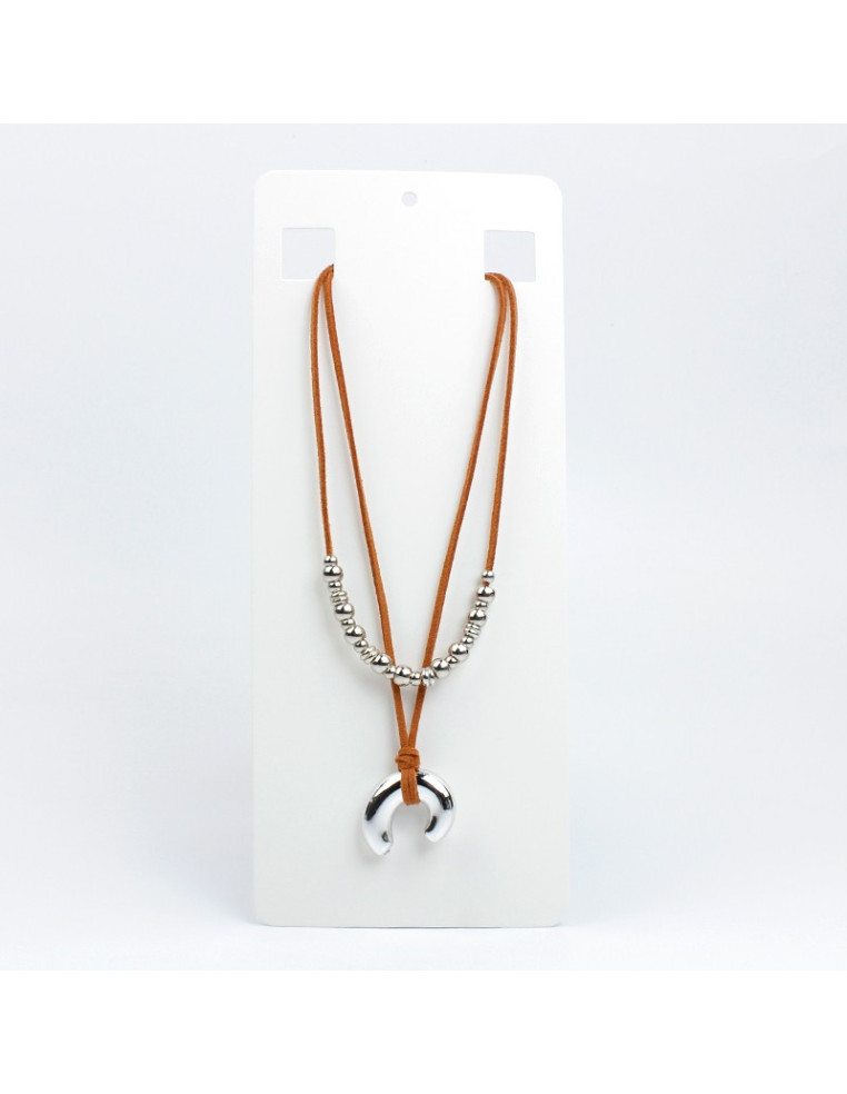 Collar de doble gamuza, una de ellas intervenida con piezas pasantes de CCB, la otra con dije exclusivo de CCB.