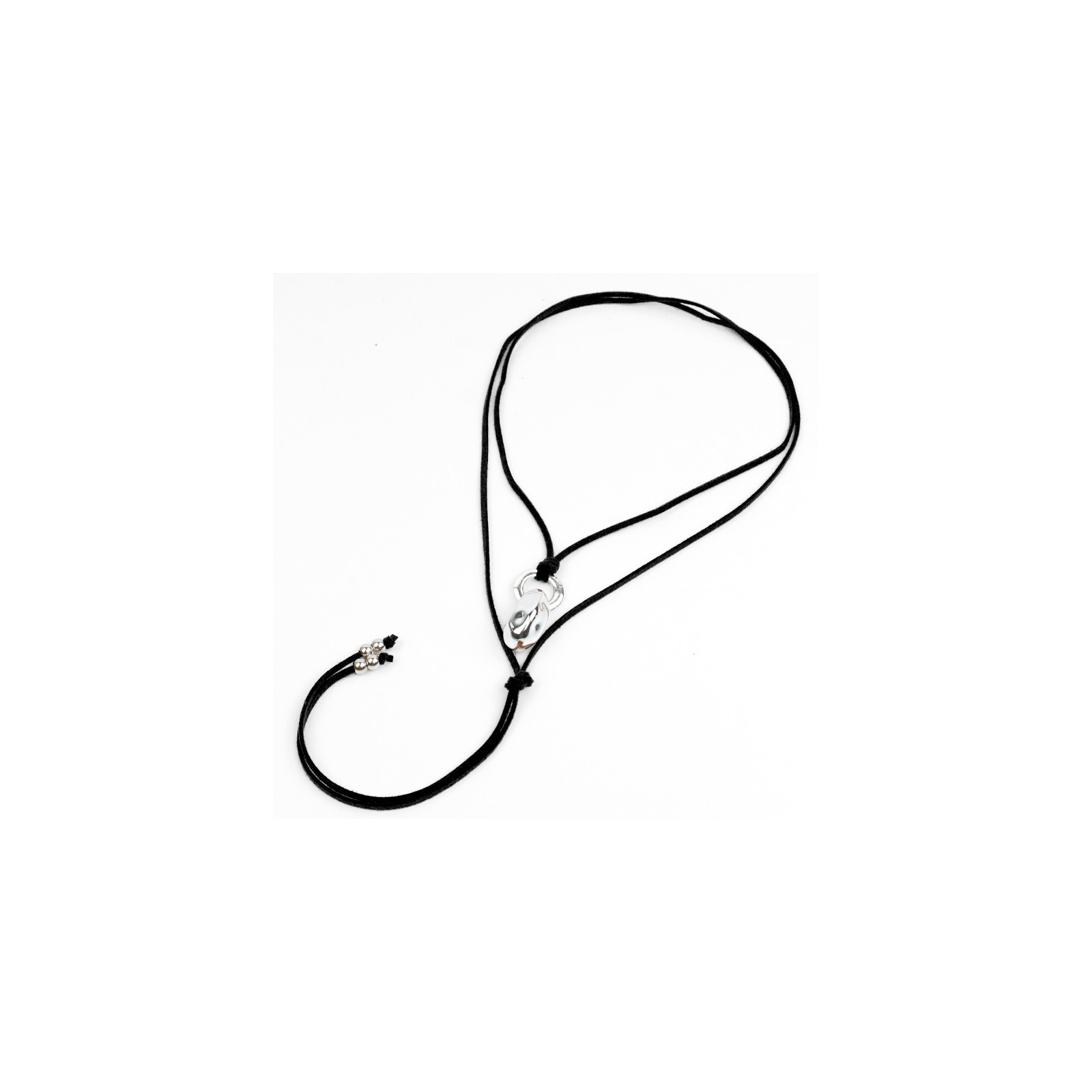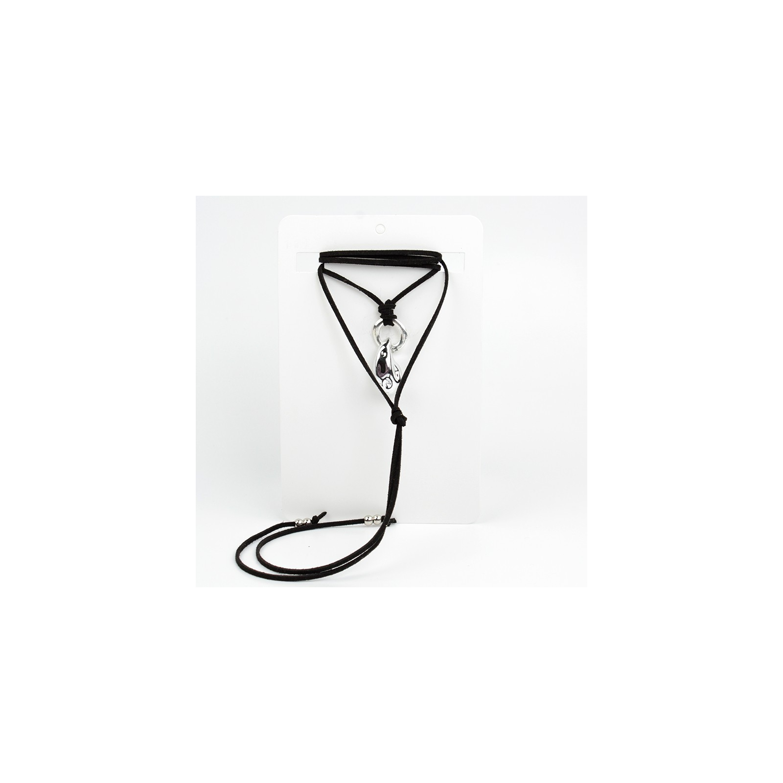 Collar de gamuza de múltiples vueltas, con dijes exclusivos intervenidos y terminales en punteras.